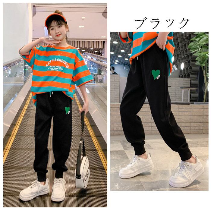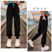子供服スウェットパンツブラック★ストリートウェア 韓国スタイル ボトム カーゴパンツ ワイドレッグ ヒップポップ ハイウエスト カジュアル ジョガーパンツ