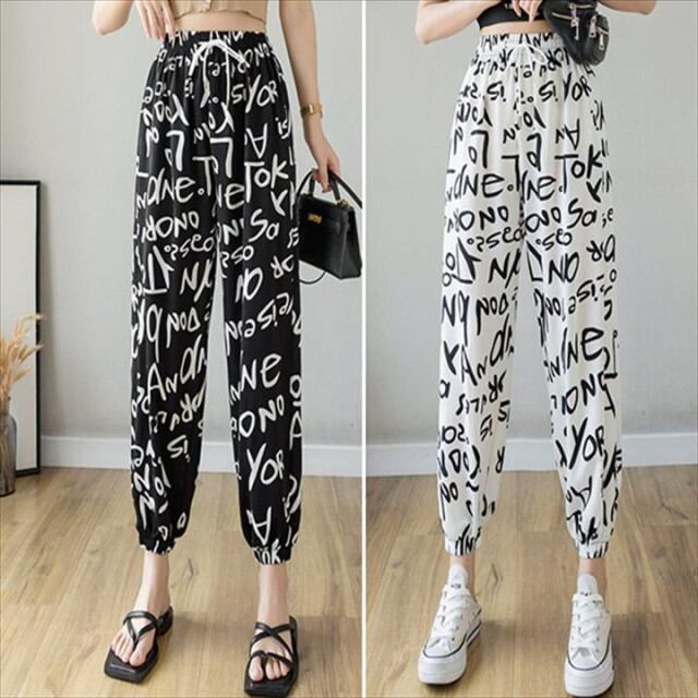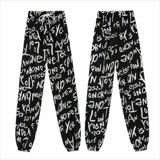 スウェットパンツロゴ入り★ストリートウェア 韓国スタイル ボトム カーゴパンツ ワイドレッグ ヒップポップ ハイウエスト カジュアル ジョガーパンツ