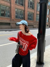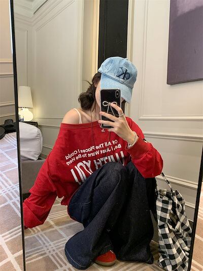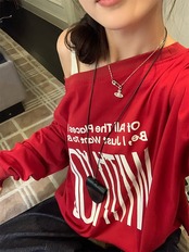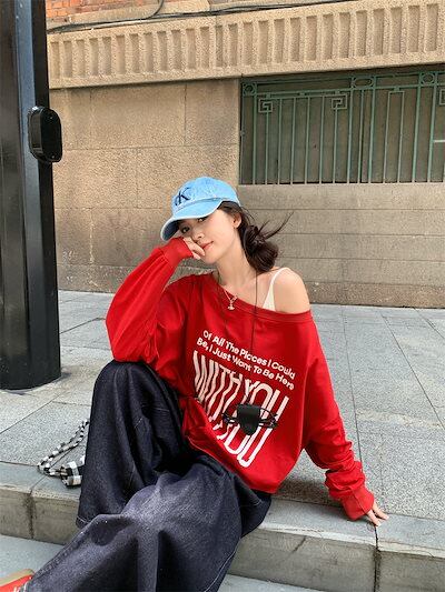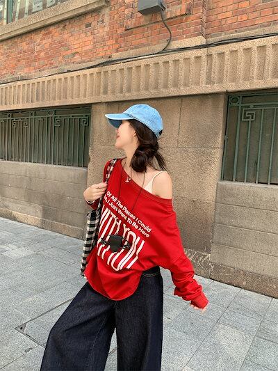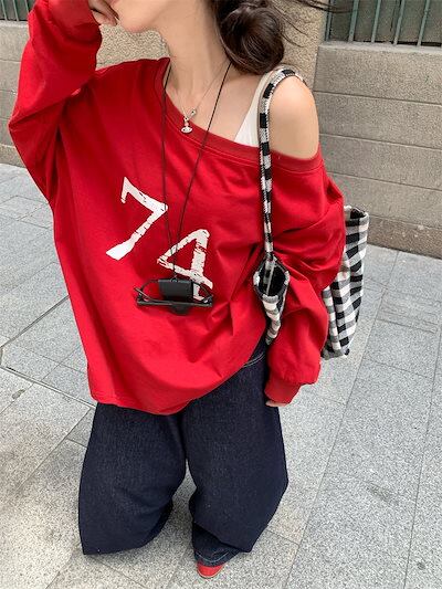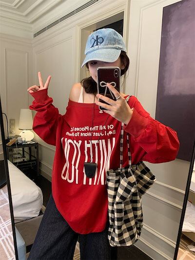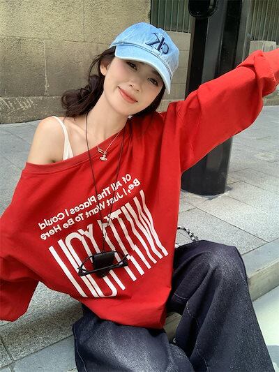 2024 秋冬 トップス 長袖 かわいいラウンドネック Tシャツ 肌見せ レディース ストレート 韓国風ルーズゆったりカジュアル おしゃれサイズ シルエットファッション系コーデ衣装上下セットアップ