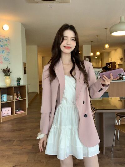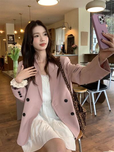 2024秋冬トップス ジャケット 長袖 ボタン テーラードカラー ゆったり 細見え 秋 ピンク おしゃれ かわいい ガーリー キュート 甘め 韓国ファッション レディース お出かけ