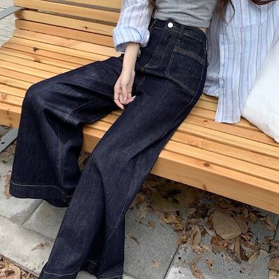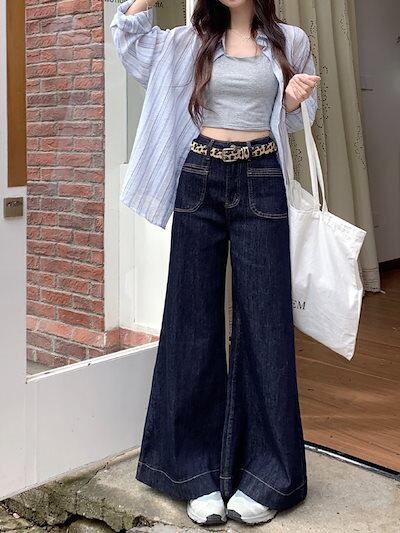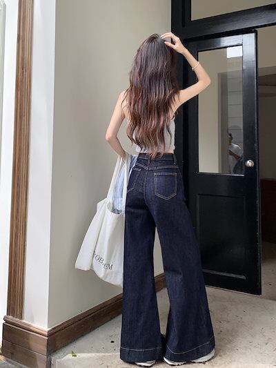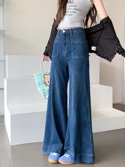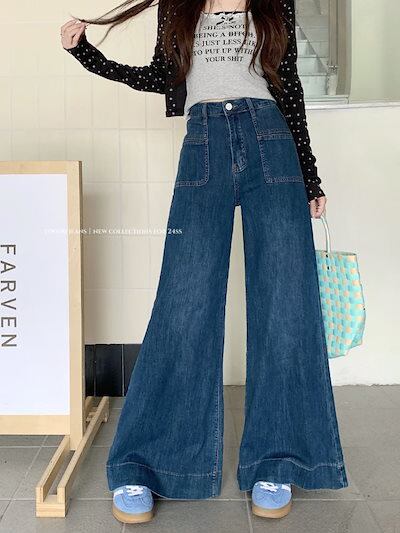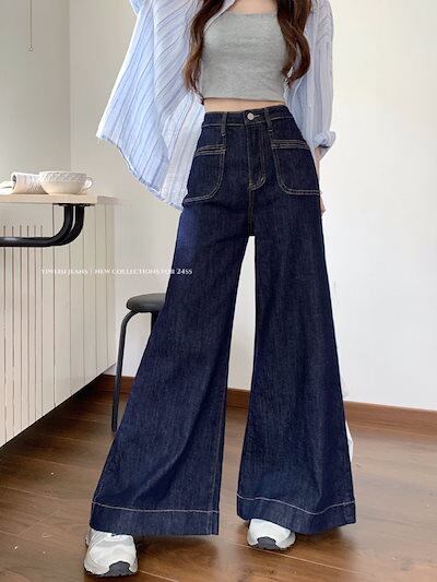 2024秋冬パンツ デニム ジーンズ ロング丈 ワイドレッグ ハイウエスト 美脚効果 脚長効果 細見え 秋 おしゃれ かわいい 韓国ファッション レディース お出かけ