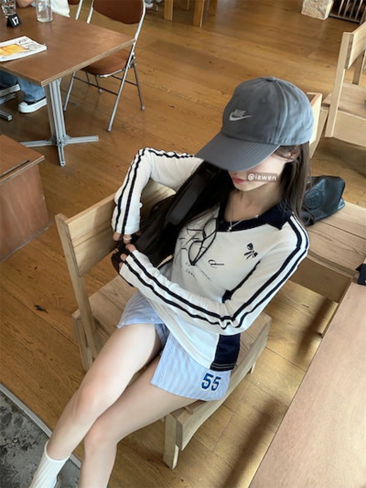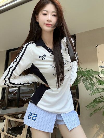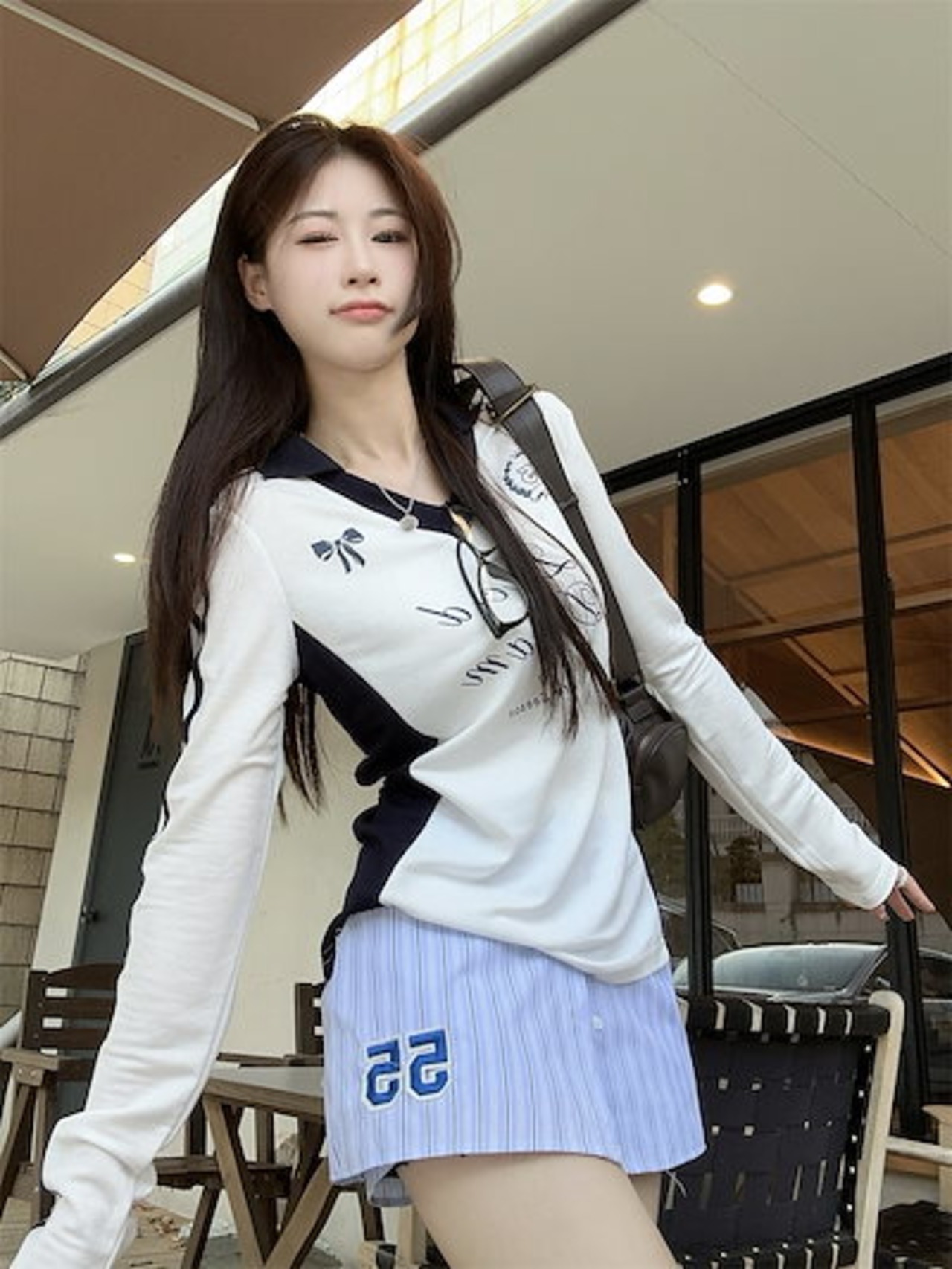 2024秋 長袖 Tシャツ ショート丈 カットソー トップス カジュアル 配色 韓国系ストリート ロゴ へそ出し タイトネックスリーブ 肌見せ T ファッションレディース かわいい風冬トップス