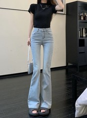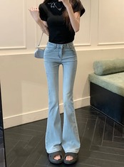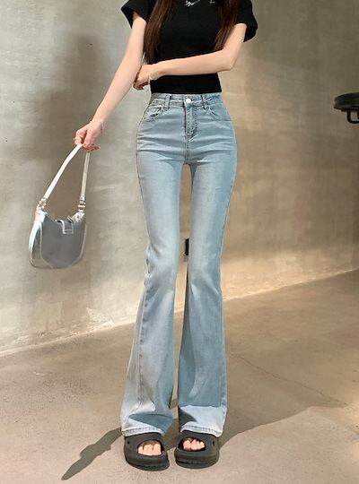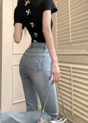 2024秋 パンツ デニム ジーンズ ロング丈 ハイウエスト 美脚効果 脚長効果 細見え ウォッシュ加工 冬 春 おしゃれ かわいい 韓国ファッション系 お出かけ
