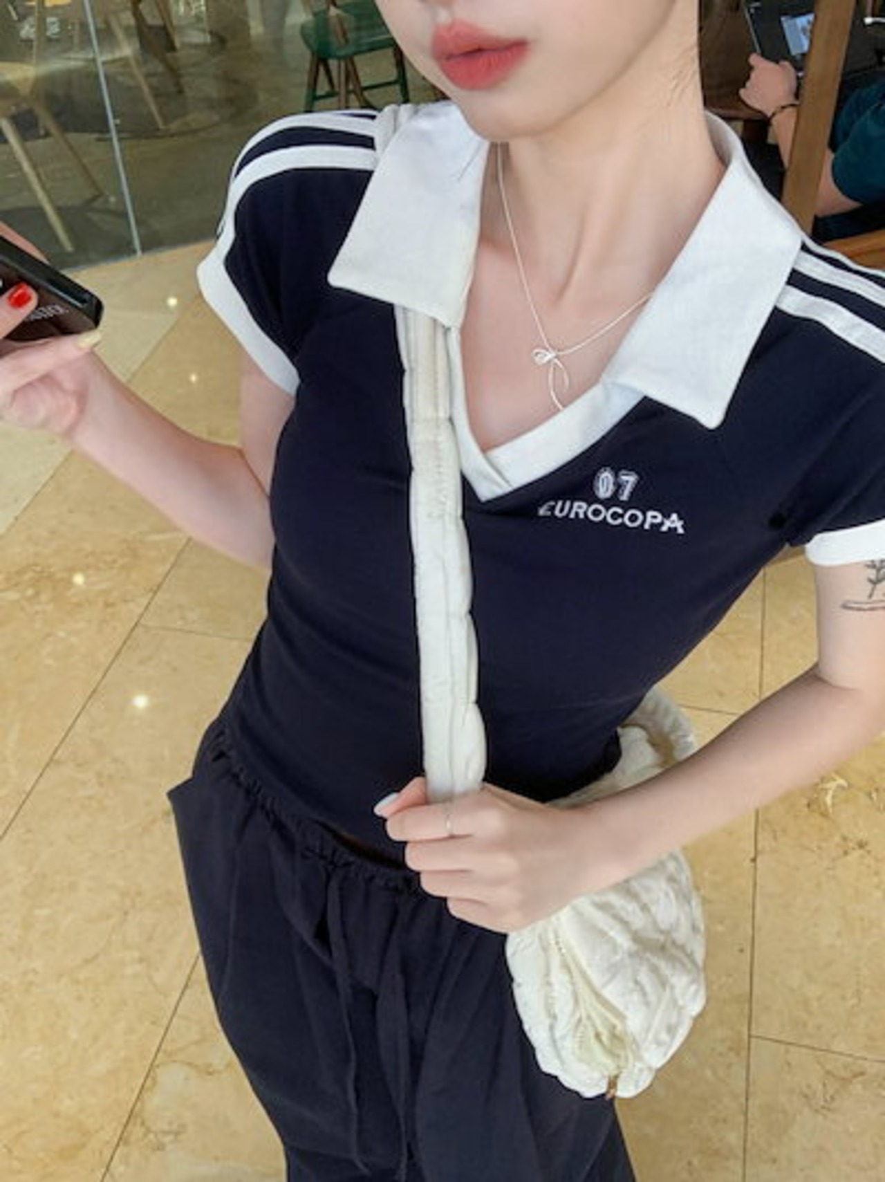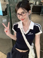 2024 春夏トップス 大人可愛い半袖 Tシャツ 韓国 ラウンドネックロゴスリム かわいいへそ出し ショート おしゃれスリーブ カジュアルサイドコーデ丈 ファッション系レディースストリートお出かけ T