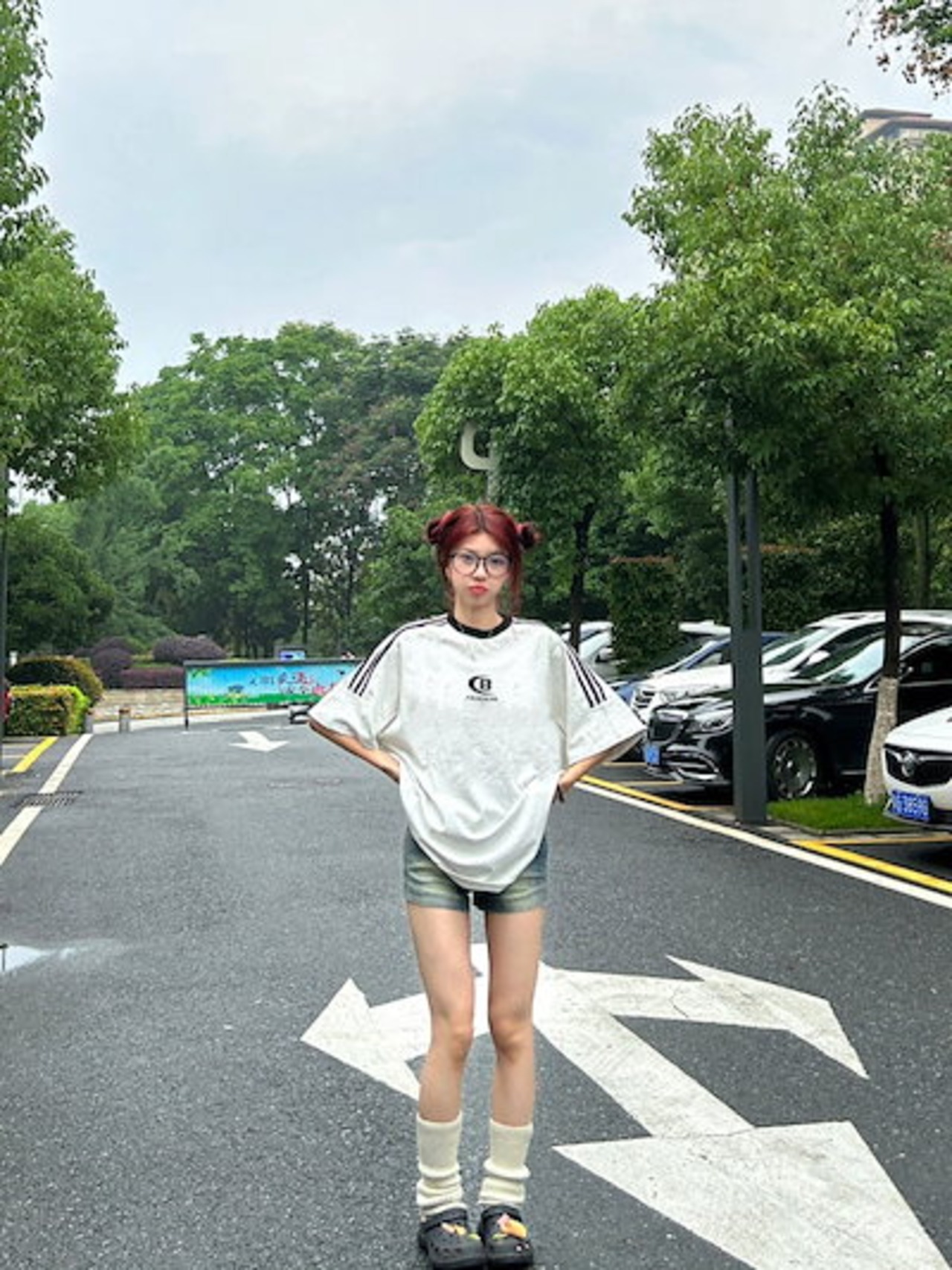 2024夏 韓国可愛い風トップス Tシャツ ファッション系 半袖 スリムフィット サイド ペイントシルエットゆったり丈 休日レディースサイズ韓国Vネック おしゃれ カジュアル メンズライク T