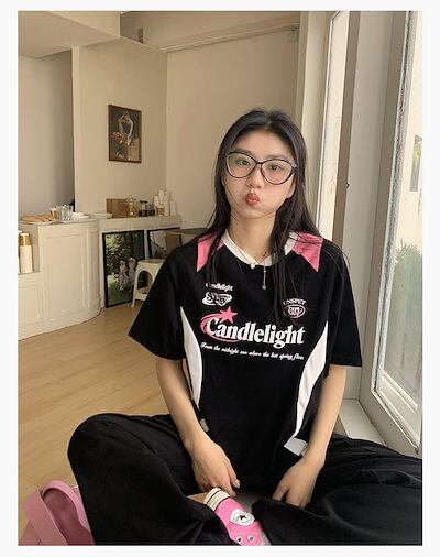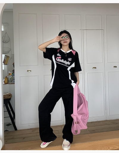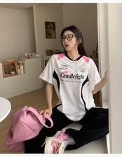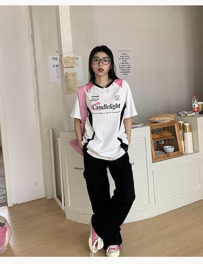 2024夏 韓国可愛い風トップス Tシャツ ファッション 半袖 スリムフィット サイド ペイントシルエット ゆったり丈 休日レディースサイズ韓国Vネック おしゃれ カジュアル メンズライク T