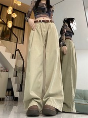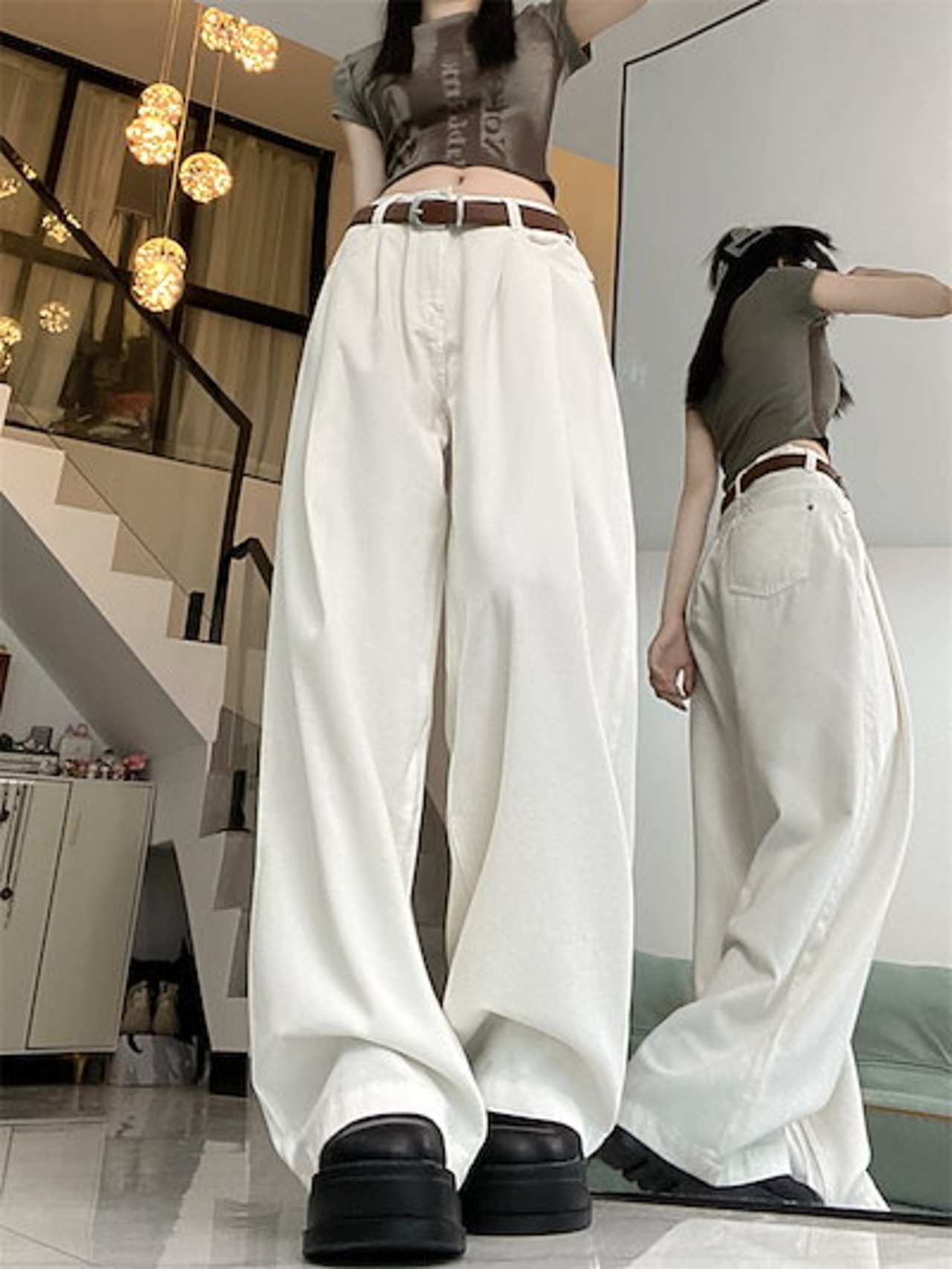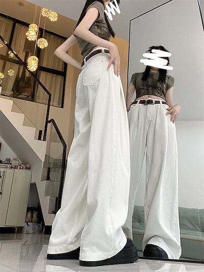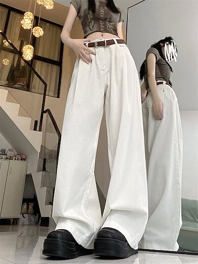 2024 パンツ ロング丈 ハイウエスト 美脚効果 脚長効果 細見え 白 おしゃれ かわいい 甘め 韓国系ファッション レディース お出かけ 秋冬