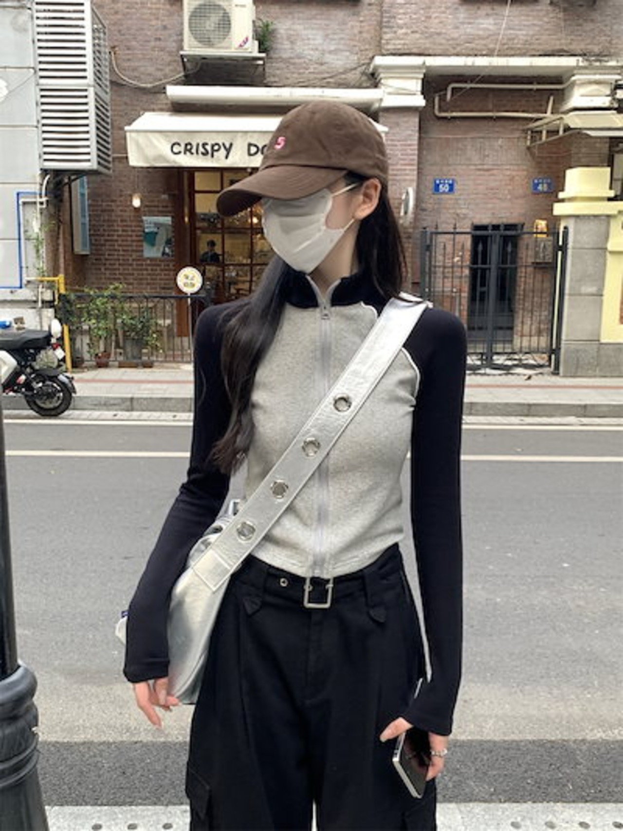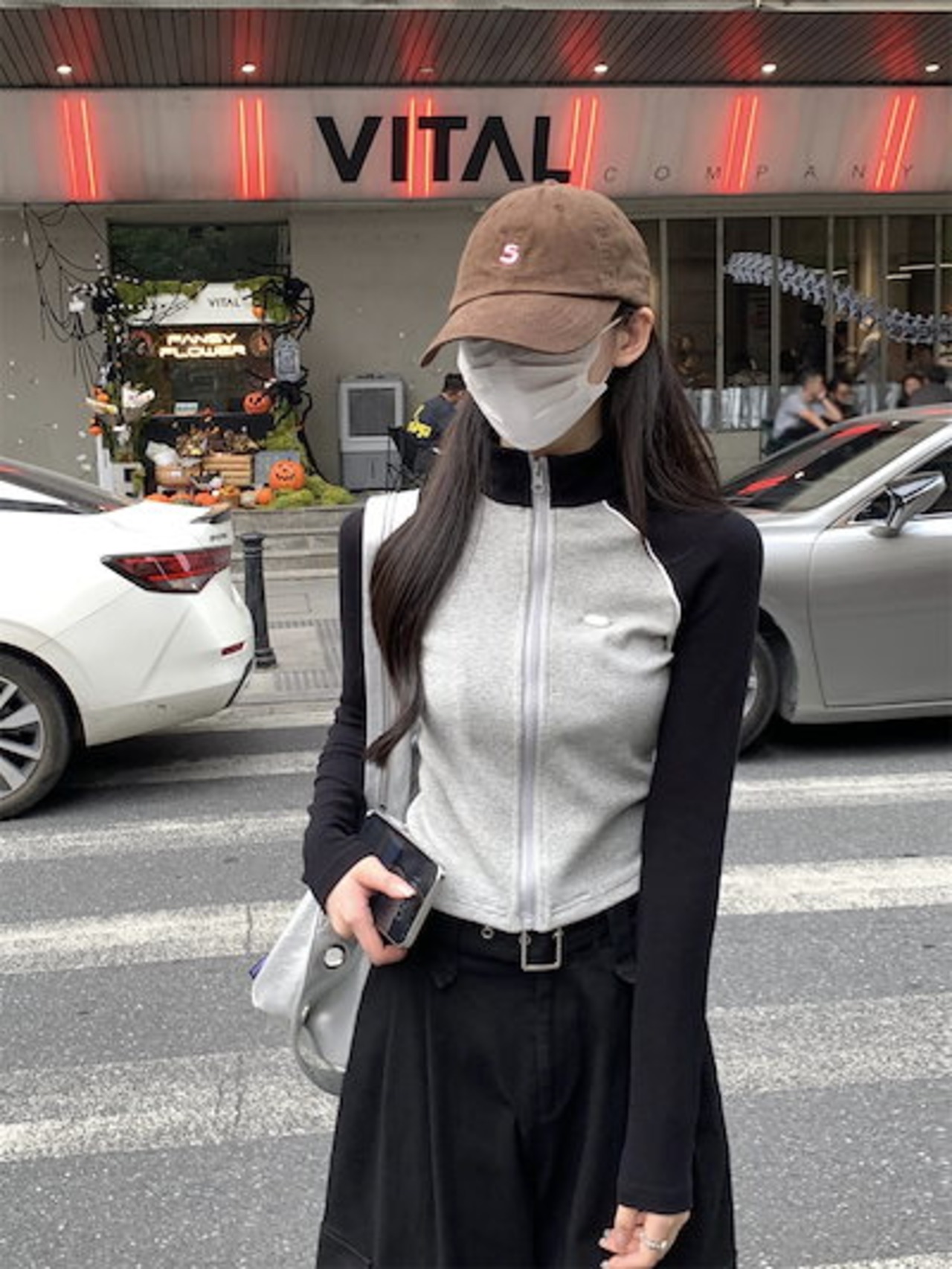 2024春夏 アウター ショート ブルゾン かわいい 長袖 カジュアル ファッション フルブルゾン トップス ハイスタンド ストリート レディースお出かけトラック