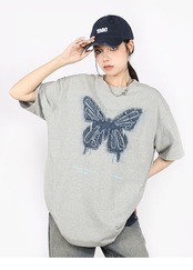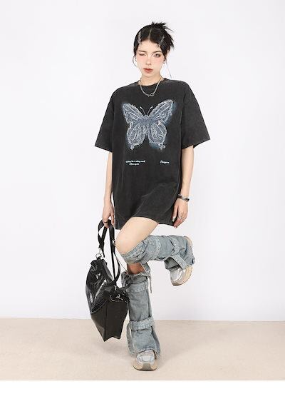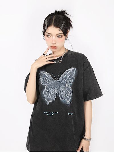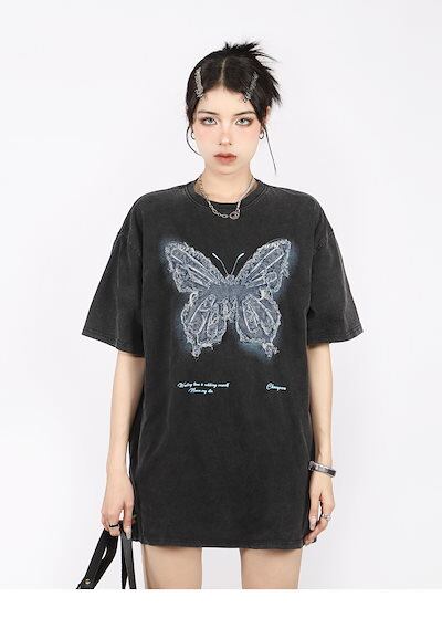 2024 夏 韓国 甘いトップス Tシャツ ファッション 半袖 スリムフィット サイド ペイントシルエット ゆったりコーデ 休日レディースサイズ韓国ネック丈 おしゃれ カジュアル メンズライク T