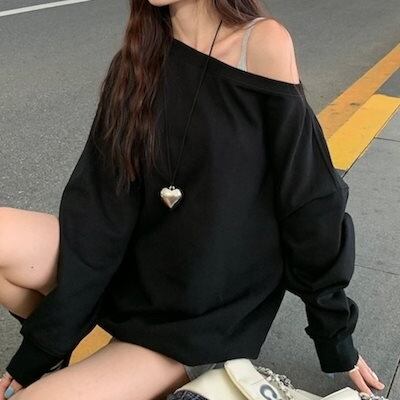 2024秋冬トップス 長袖 肌見せ 無地 ゆったり 細見え 秋冬 黒 おしゃれ かわいい 韓国系ファッション レディース お出かけ