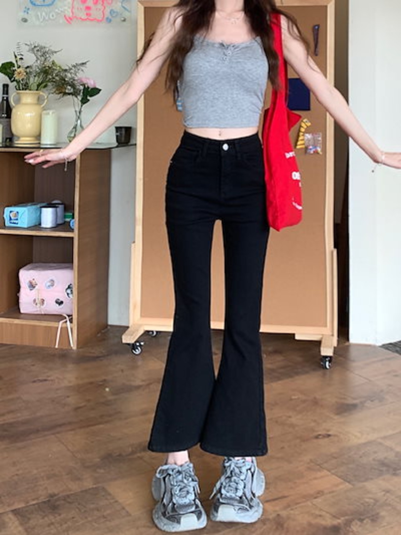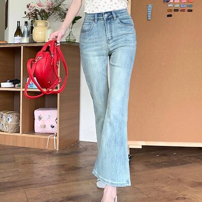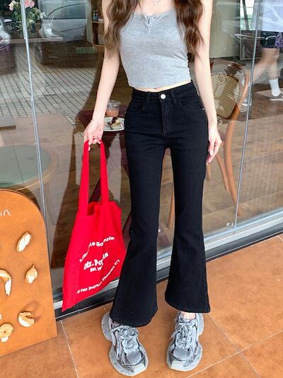 2024春夏パンツ デニム ジーンズ クロップド丈 アンクル丈 ワイドレッグ ハイウエスト 美脚効果 脚長効果 細見え 夏 黒 おしゃれ かわいい 韓国ファッション レディース お出かけ