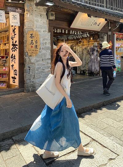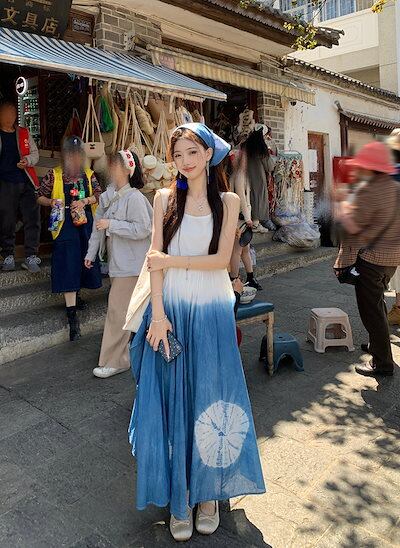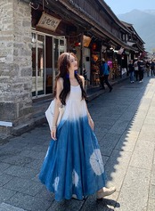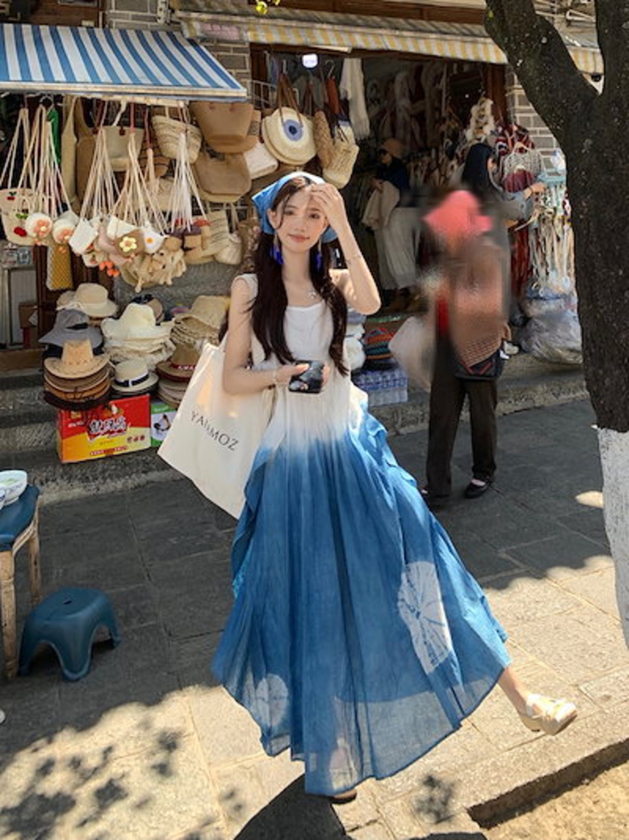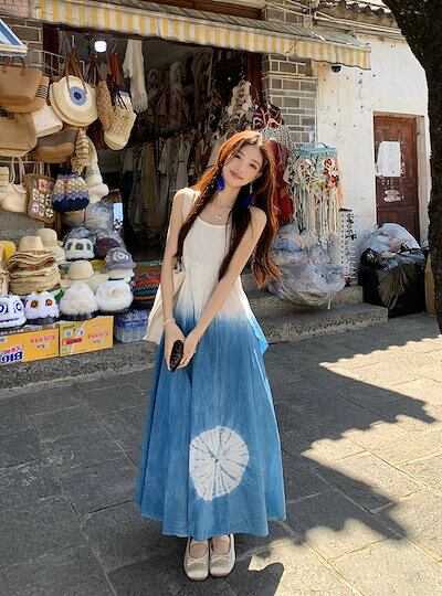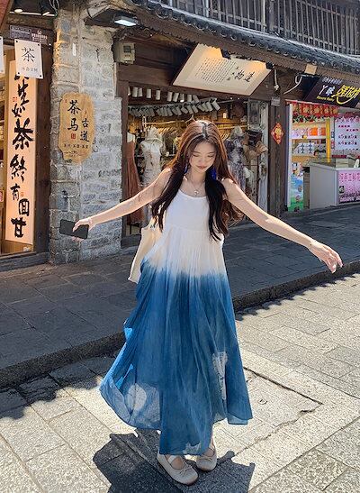 2024春夏タイダイ柄グラデーション キャミワンピース ノースリーブ ワンピース ロングワンピース 体型カバー レトロ 韓国ファッション レディース レトロ 大人可愛い