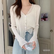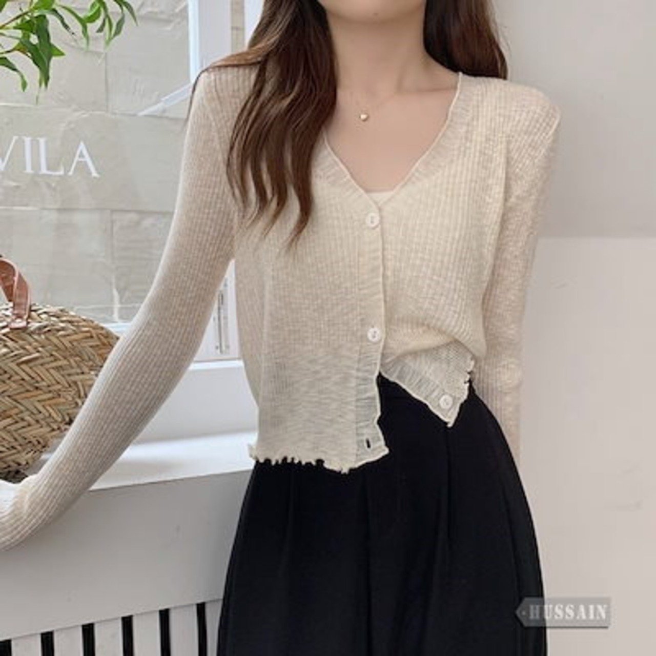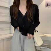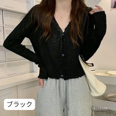 2024 夏 韓国 ライトニット カーディガン トップス 羽織り加工 ショート 薄手 長袖 紫外線対策 UV対策 きれいめ オフィス OLネックカジュアルフレンチフェミニンファッション韓国 レディース