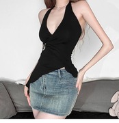 2024夏トップス セクシー キャミソールTシャツ ゆったり 細見え カラフル ツイストシャツ ネック おしゃれ かわいい キュート 甘め 黒 白韓国系ファッション レディース お出かけ