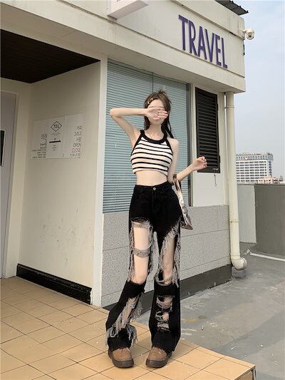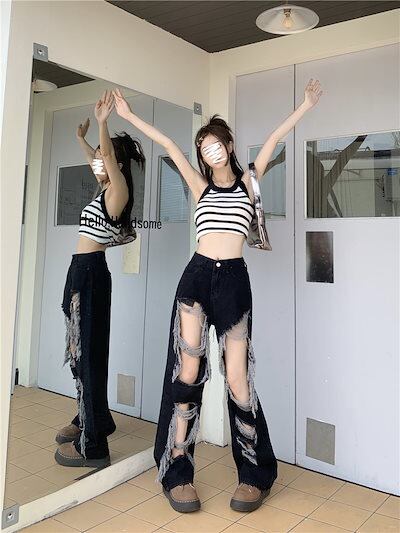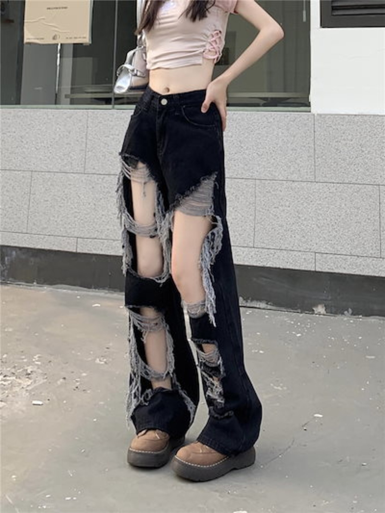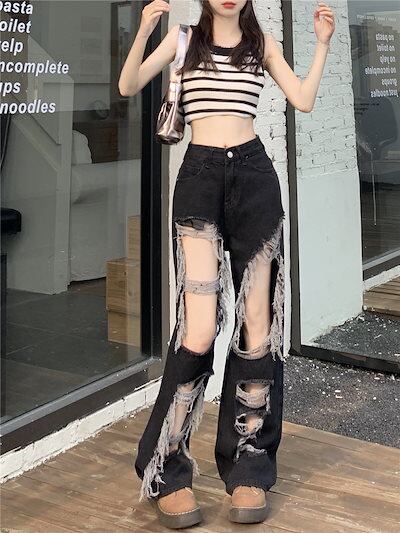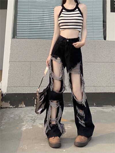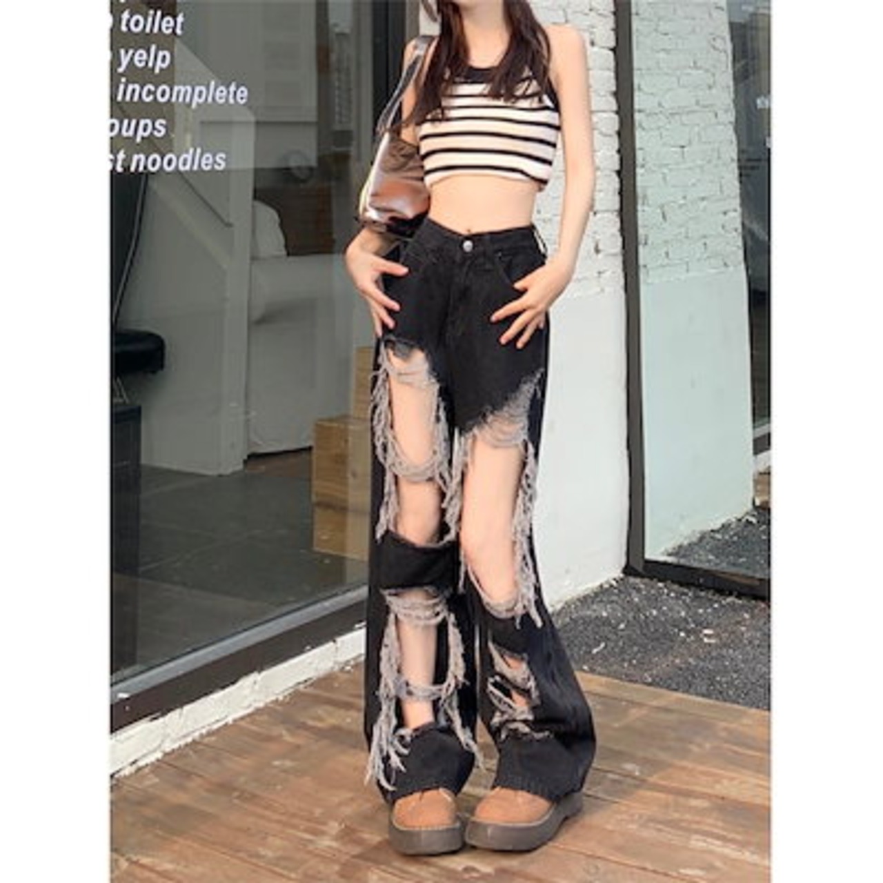 2024春秋デニムパンツ ボトムス ジーンズ ファッション系スタイル ゆるダボ ジーンズ シルエット加工 カジュアル 夏 メンズライク
