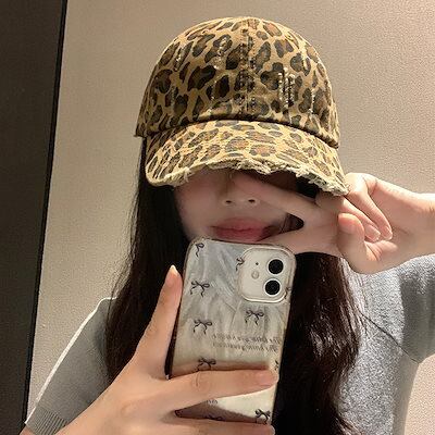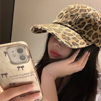 キャップ ヒョウ柄レディース秋Y2Kショー顔小さなアヒルの舌帽子します