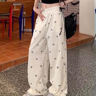 2024 夏 韓国パンツ ロング丈 ハイウエスト 美脚効果 脚長効果 細見え 夏 白 黒 おしゃれ かわいい キュート 甘め 韓国系ファッション レディース お出かけ