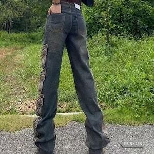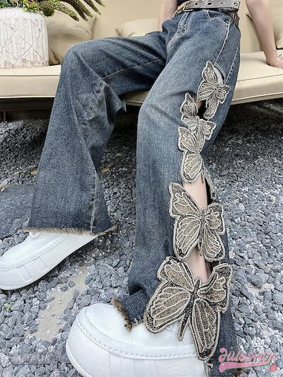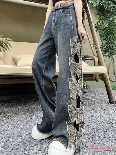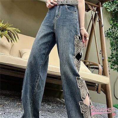 2024夏 韓国 ハイウエスト 韓国 レディース デニムパンツ ボトムス ワイドレッグ ゆるダボ ジーンズ ゆったり カジュアル ストリート 切りっぱなしカットオフ加工肌見せ ファッション系