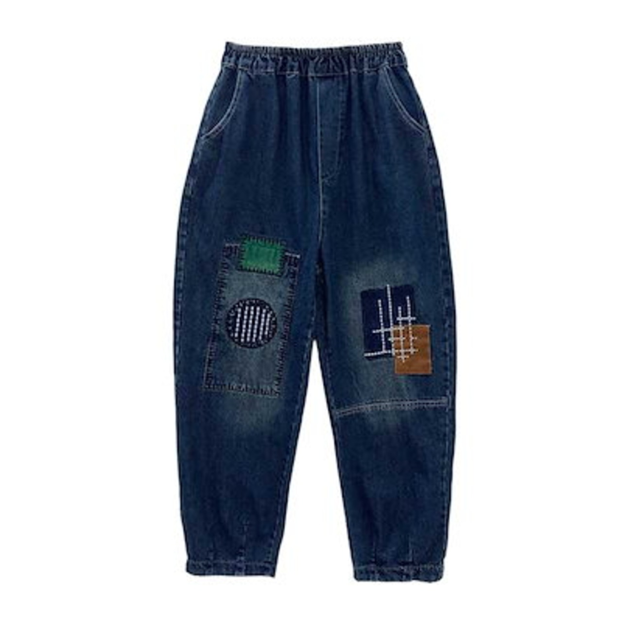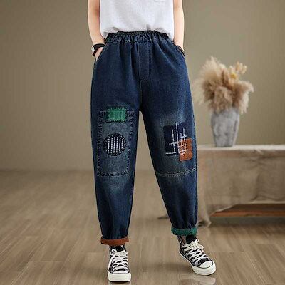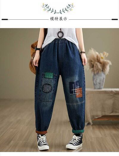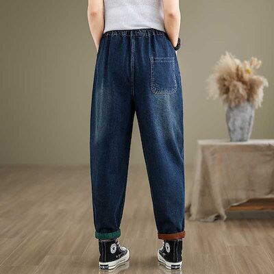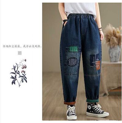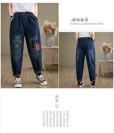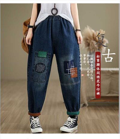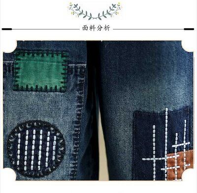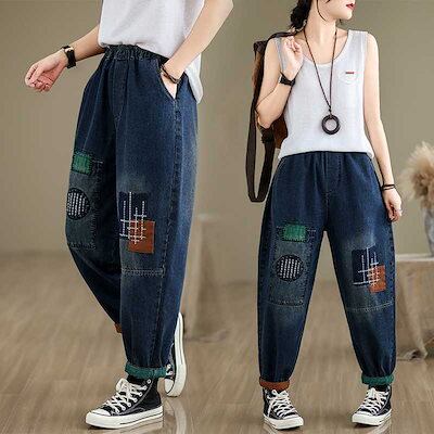 「ファットガール」 夏 ダメージデニム デニムパンツ ジーンズ ゴム 九分丈 刺繍 薄手 ワイドパンツ デーパードパンツ 体型カバー 大きいサイズ ゆったり レディース
