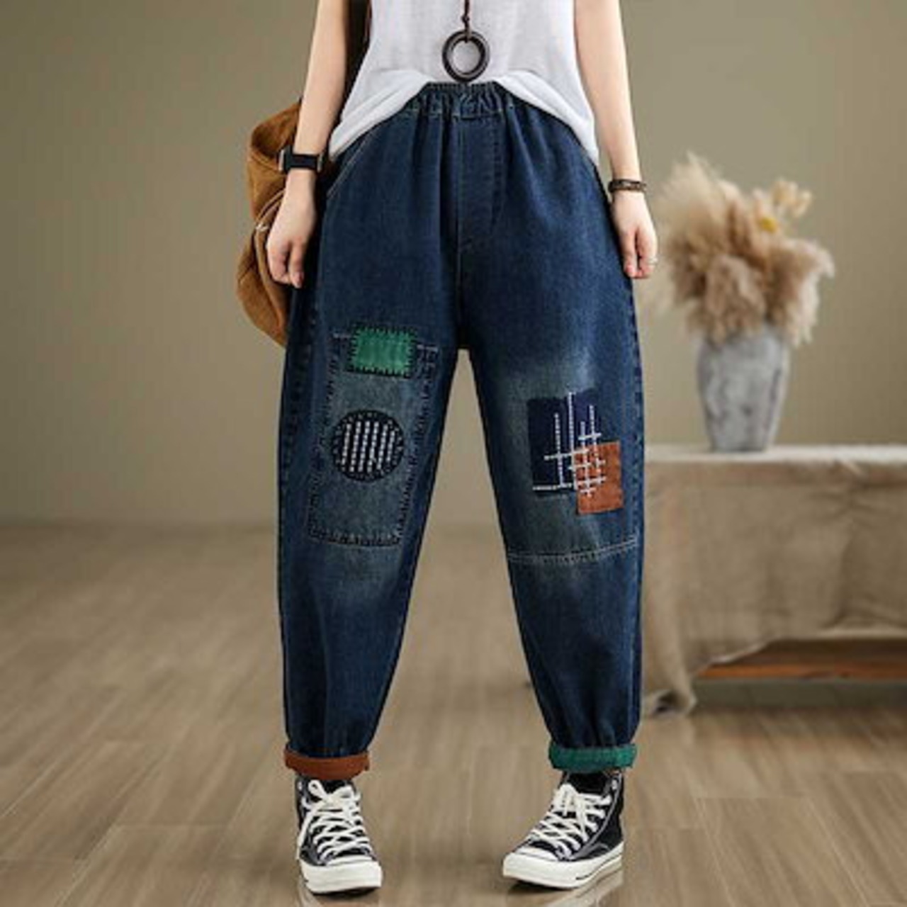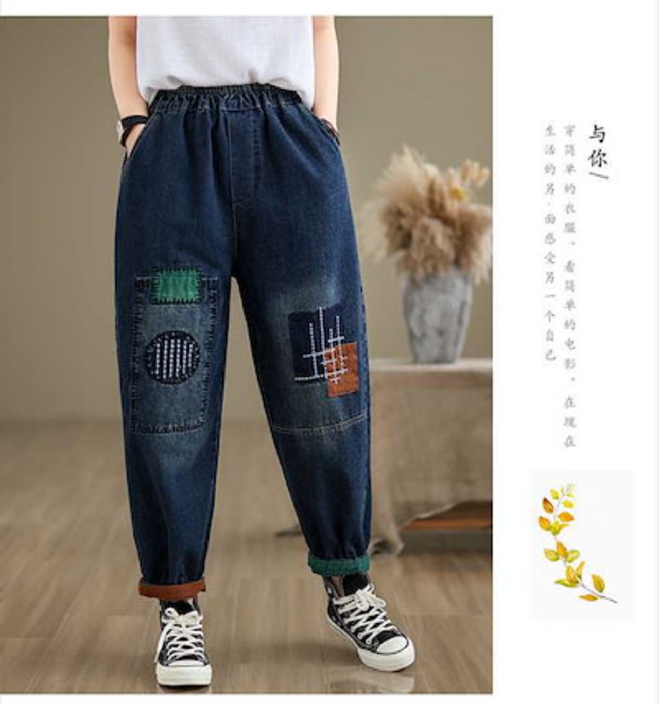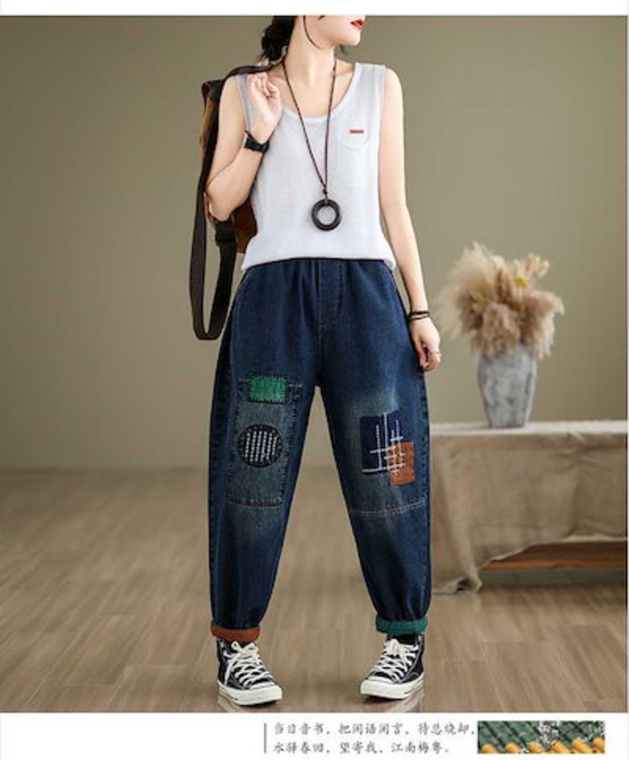 「ファットガール」 夏 ダメージデニム デニムパンツ ジーンズ ゴム 九分丈 刺繍 薄手 ワイドパンツ デーパードパンツ 体型カバー 大きいサイズ ゆったり レディース
