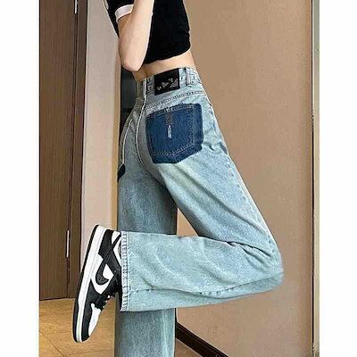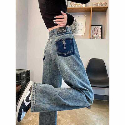 春秋新作 ガウチョパンツ レトロブルー ワイドパンツ ハイウエスト ゆとりがある ストレートシリンダ ワイドパンツ レディース
