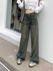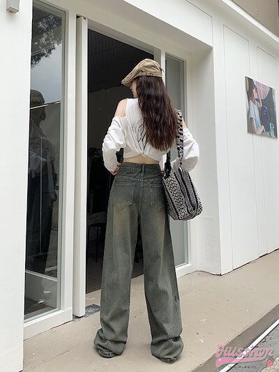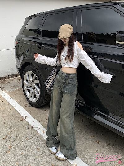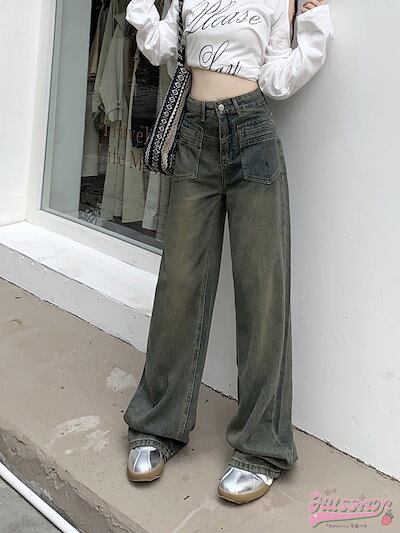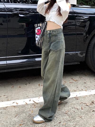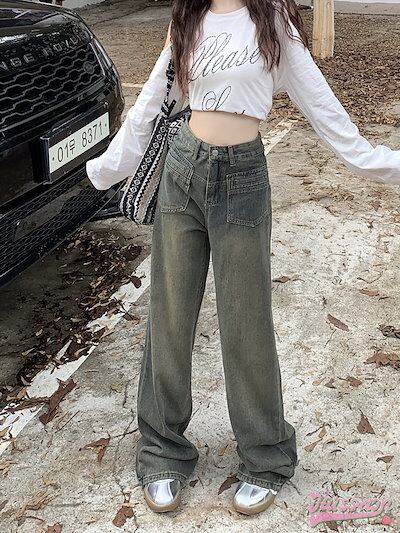 2024 春夏レトロジーンズ女性春新作ハイウエスト薄型デザインワイドパンツストレートドラッグズボン潮