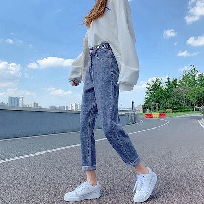 【2枚購入で 2oo円OFF! 】レトロ ストレート ハイウエスト ゆったり レディースロングパンツ 美脚 長ズボン カジュアル 韓国ファッション 美尻 適用着痩せ脚長効果 ワイドパンツひんやりボトム