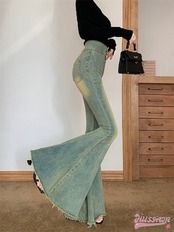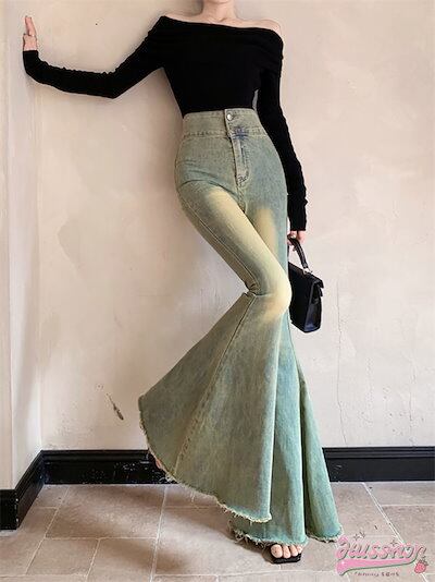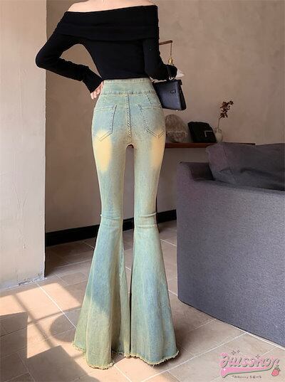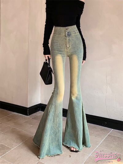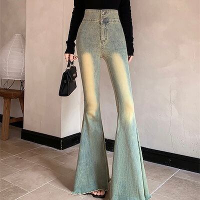 2024春夏 パンツ デニム ジーンズ スキニー ワイドレッグ フレア スリム ウォッシュ加工 ハイウエスト 脚長効果 美脚効果 細見え 春 カジュアル 韓国ファッション レディース お出かけ