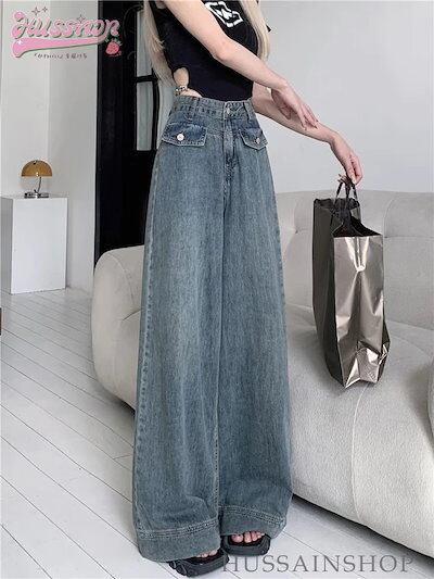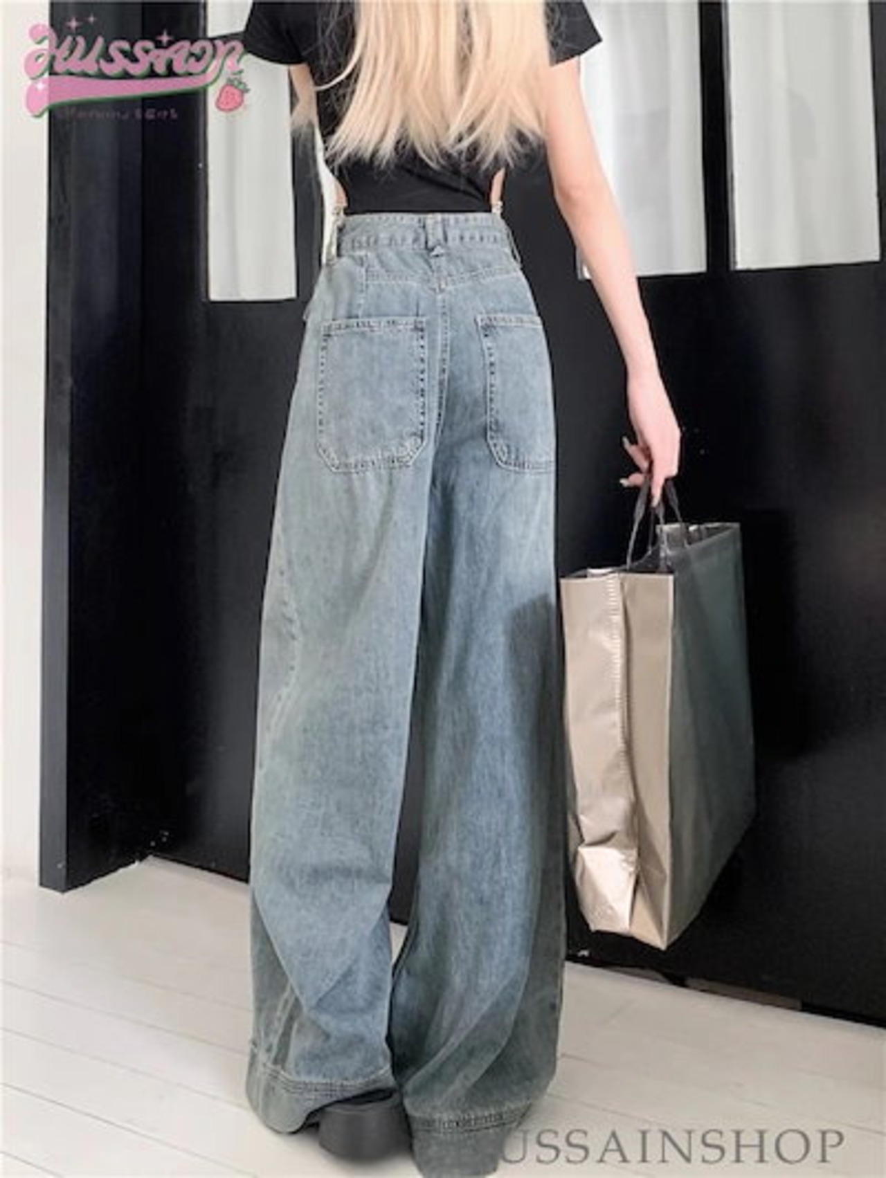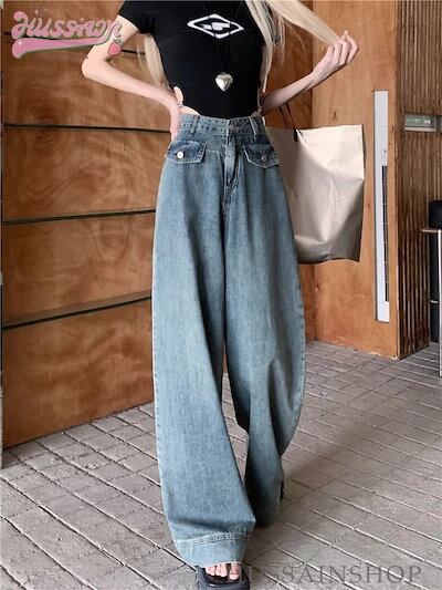 2024 春夏 ボトムスジーンズ デニム ハイウエスト 脚長効果 レッグ ファッション 足長効果 デニム ルーズ カジュアル スタイルアップ 脚長 美脚 クール かっこいい
