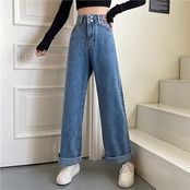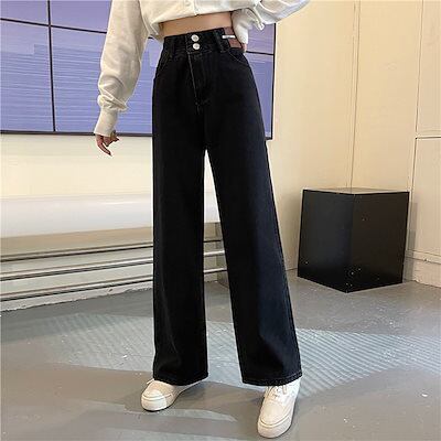 ハイウエストジーンズ 2024 ストレートレッグパンツゆったりスリム多用途の女性用フロアレングスワイドレッグパンツ