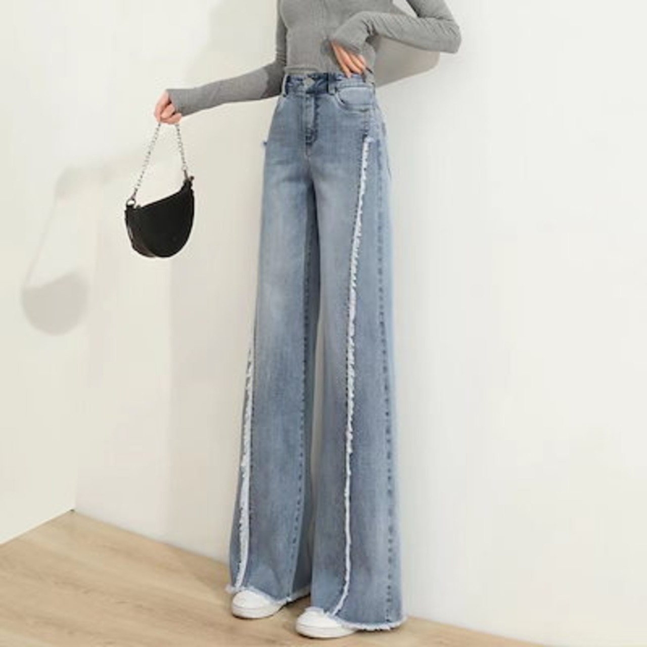 女性用スモールワイドレッグカジュアルパンツハイウエストフロアレングスパンツ2024 女 用ルーズストレート痩身パンツ