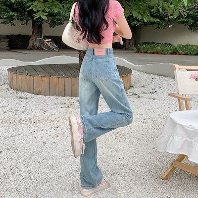 大きいサイズのハイウエストストレートジーンズ女性のための 2024 小さな狭いバージョンルーズワイドレッグフロアモップパンツ