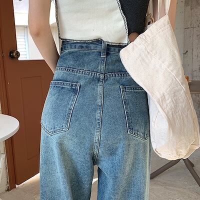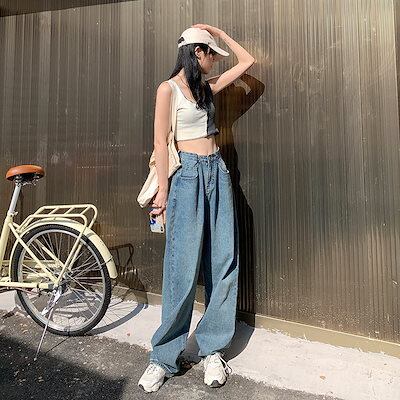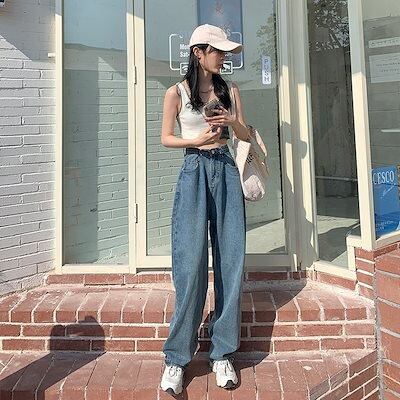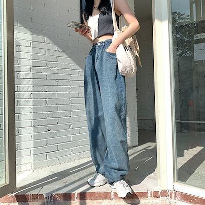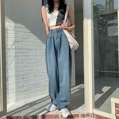 デニムパンツ ハイウエストパンツ ワイドパンツ デニムパンツ レディース 春夏 ゆったり スリム見え ストレート