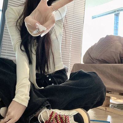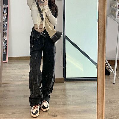 デニムパンツ 人気スラックスパンツアメリカン レトロ ストレート ジーンズ レディース 夏 新作 ハイウエスト 痩身 ルーズ ドレープ ワイドパンツ インズ 潮