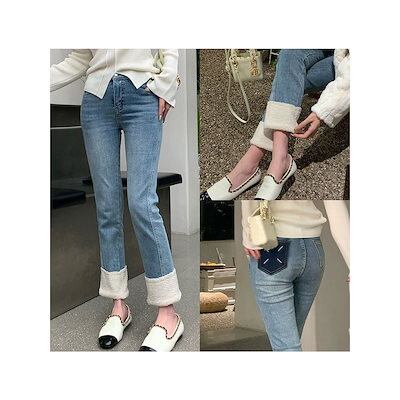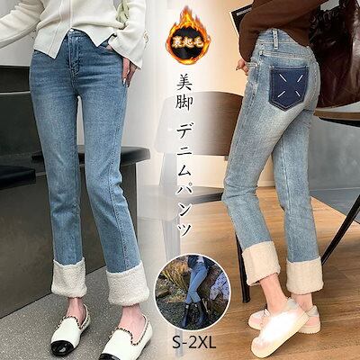 ワイドパンツレディース ジーンズ 裏起毛 デニムパンツ ロングパンツ ロングデニム ハイウエスト ポケット付き ボタン付き ジップ付き ゆったり 厚手 あったか スキニーパンツ 暖かい デニムボトムス
