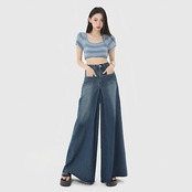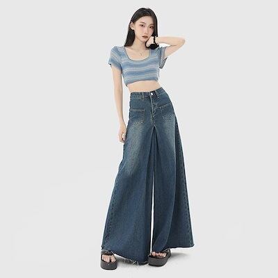 ワイドパンツ 2024新作 流行り デニムパンツ ハイウエスト ワイドパンツ ジーンズ レディース レトロ ゆったり ズボン脚長効果!ワイドパンツ デニムボトムス スキニーパンツ