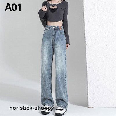 デニム レディース パンツ ジーンズ デニム ボトムス 美脚 チノパン ハイウエスト ワイドパンツ パンツ 体型カバー 春 夏 秋 ジーパン 20代 30代 40代 50代