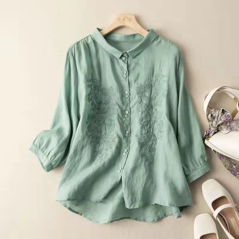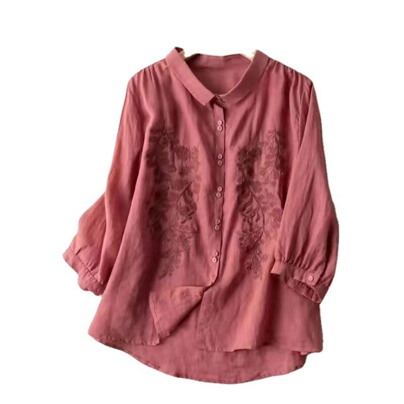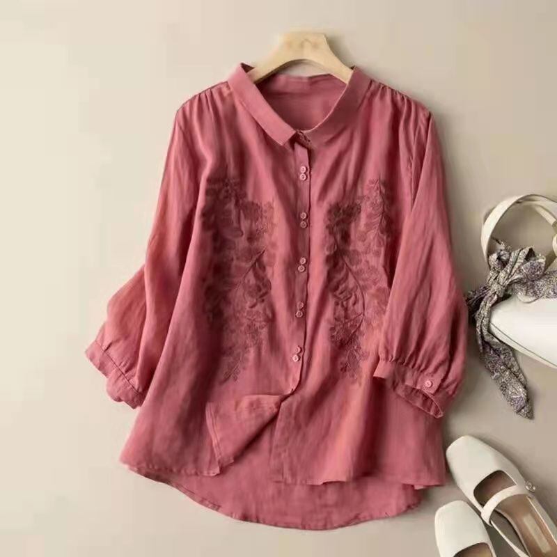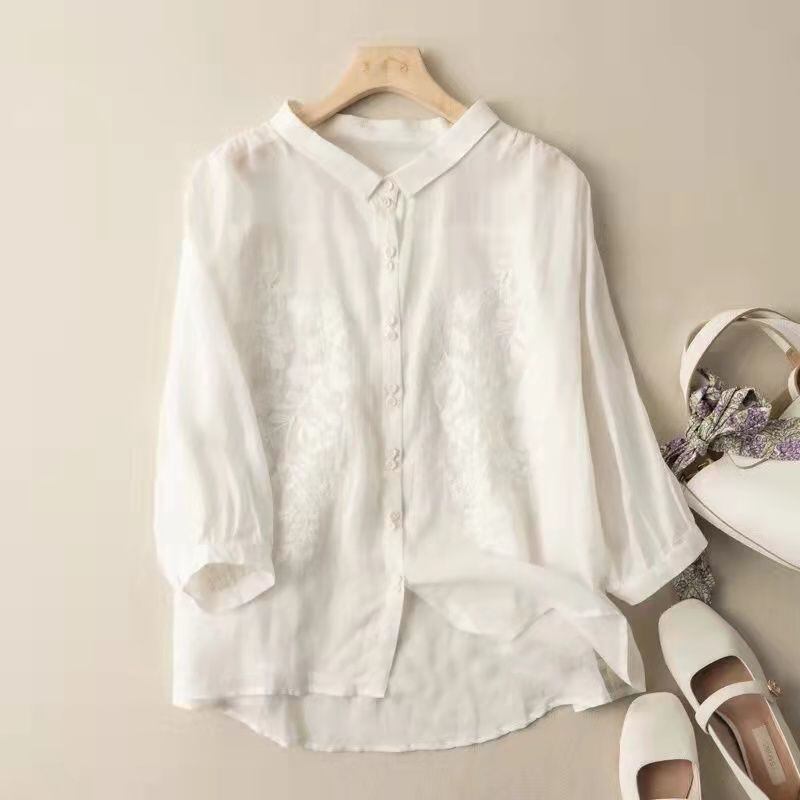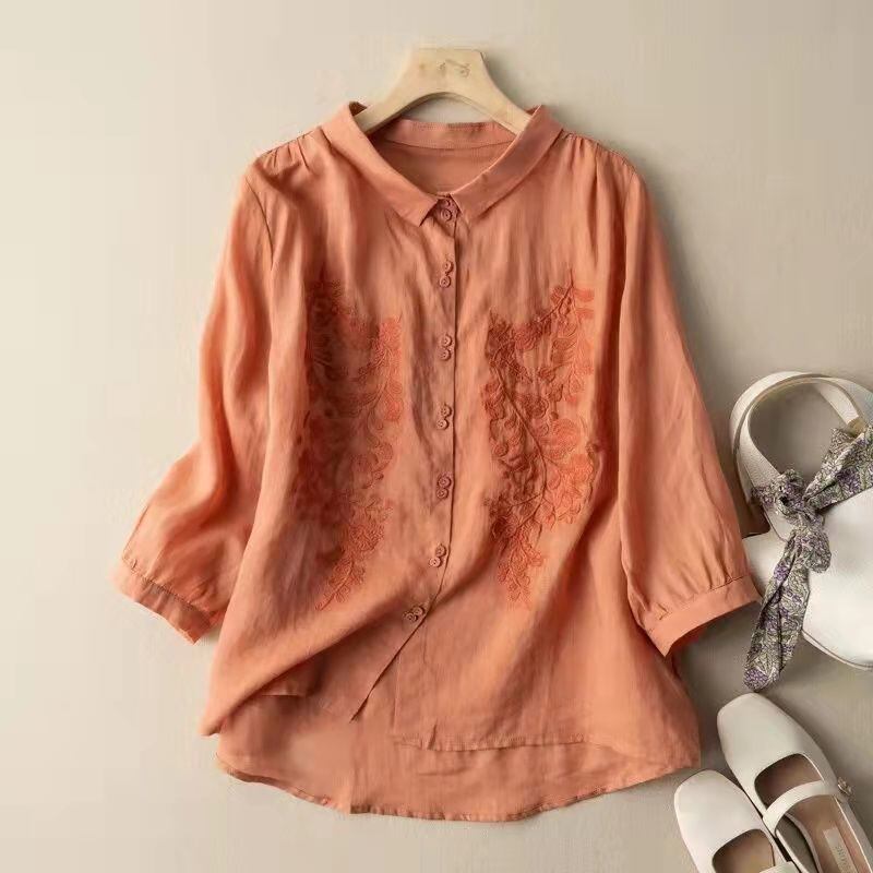 初回送料無料刺?レディースシャツゆったりサイズトップス薄い七分袖ラージサイズ