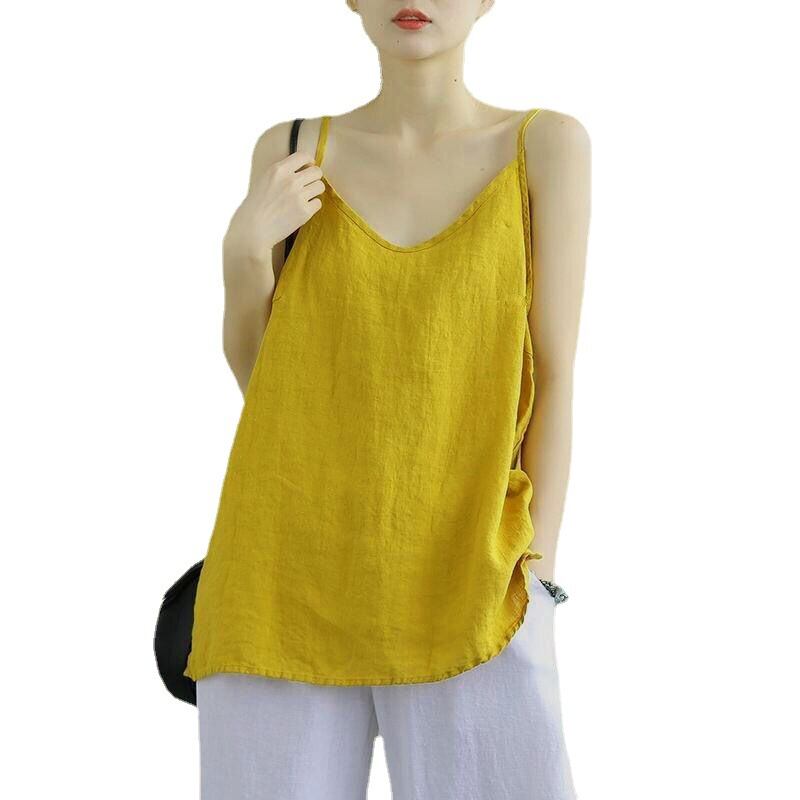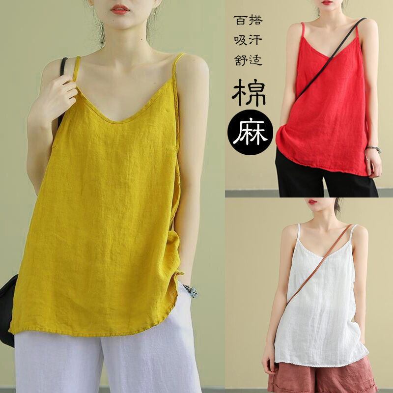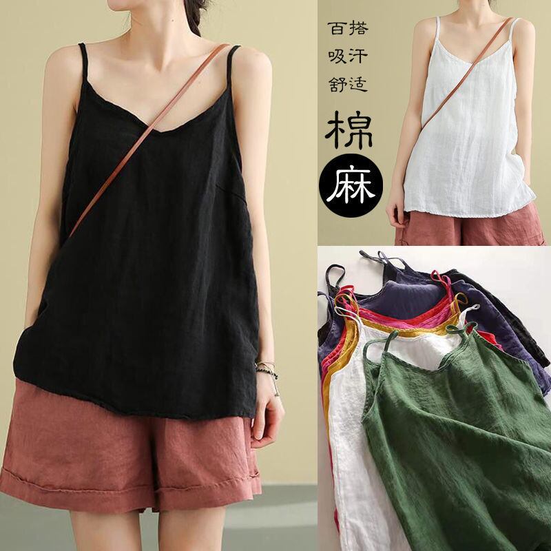 初回送料無料ゆったりサイズトップコットンリネンキャミソールベストトップス