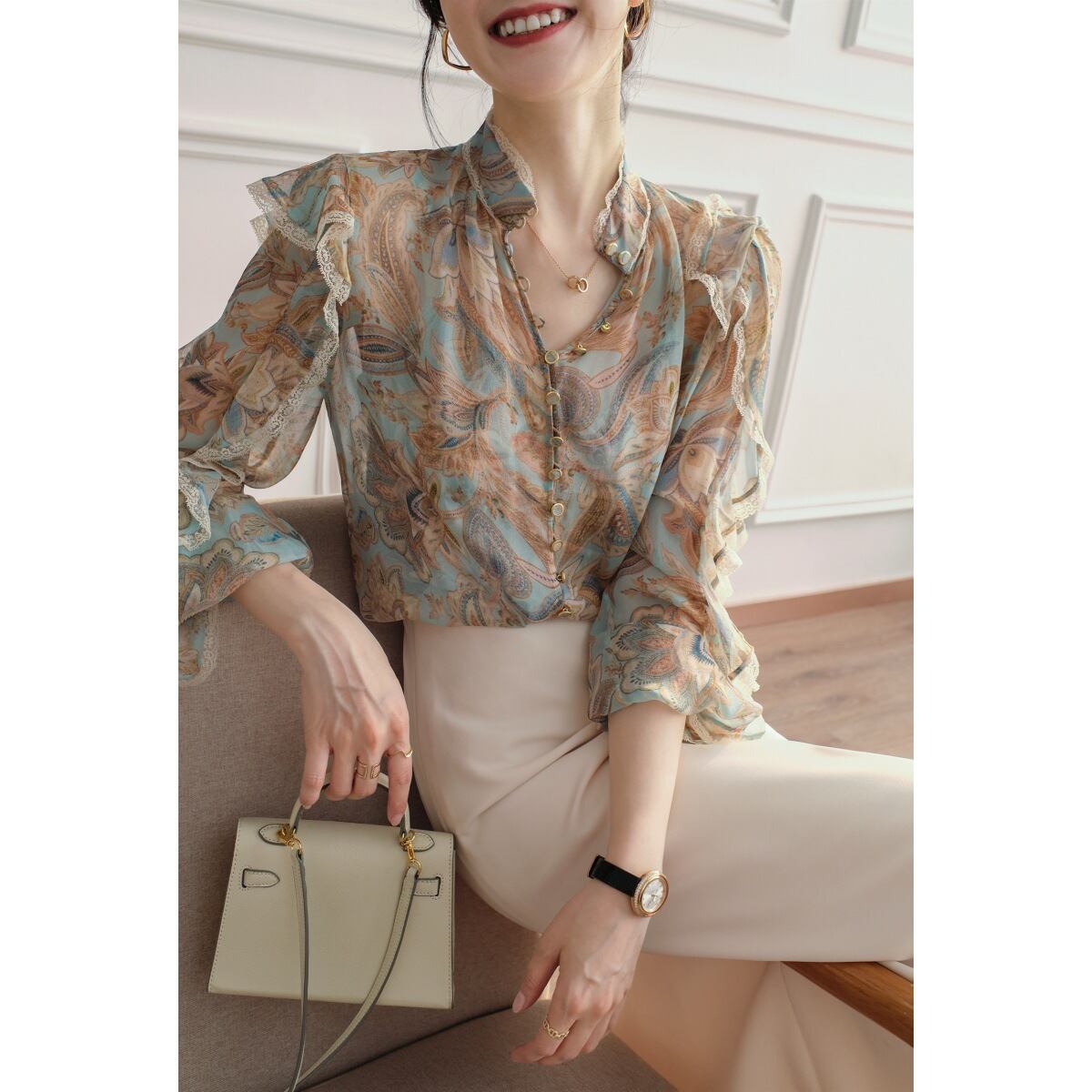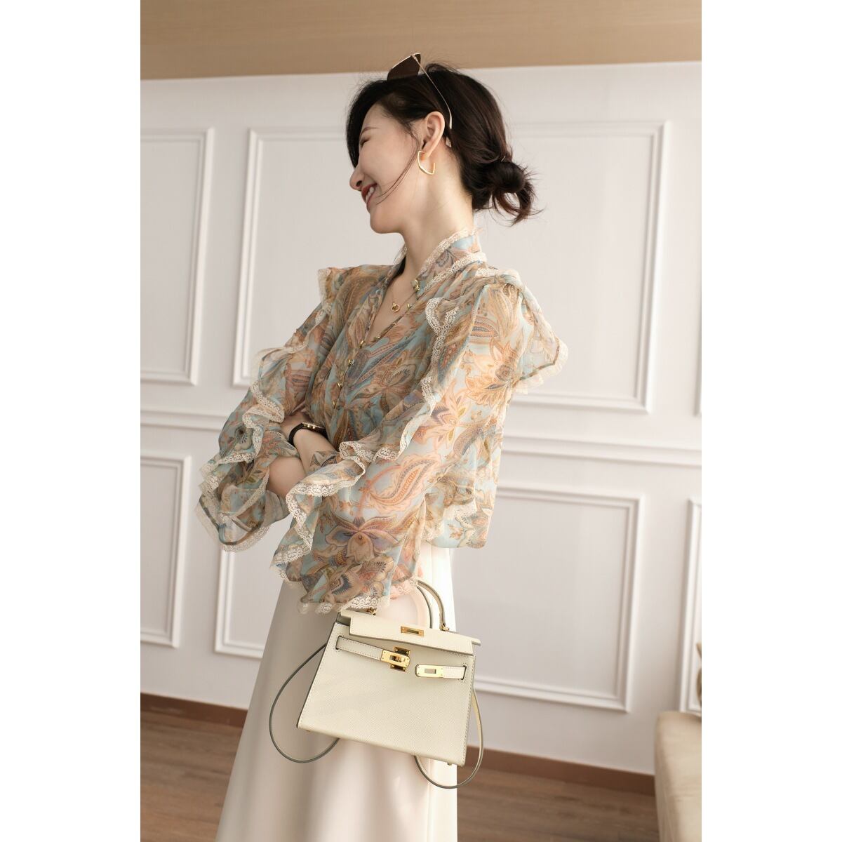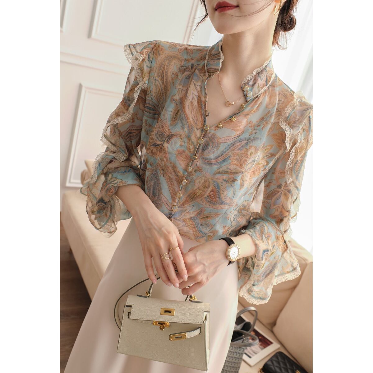 初回送料無料夏新作ブラウス トップスシャツ長袖フリルフリル可愛いオシャレ