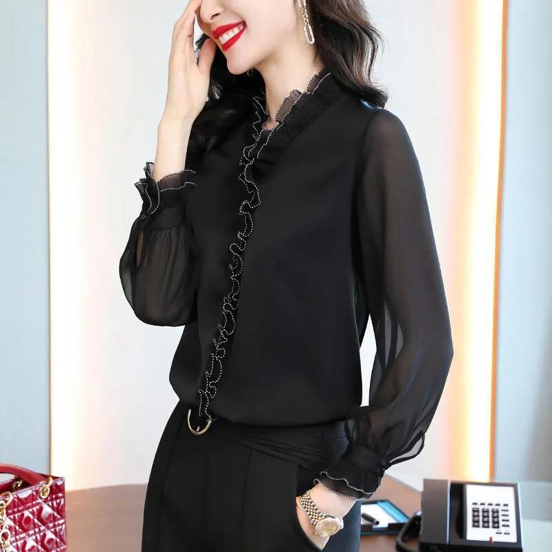 初回送料無料夏新作ブラウスセクシー通勤通学シャツ長袖シフォントップス