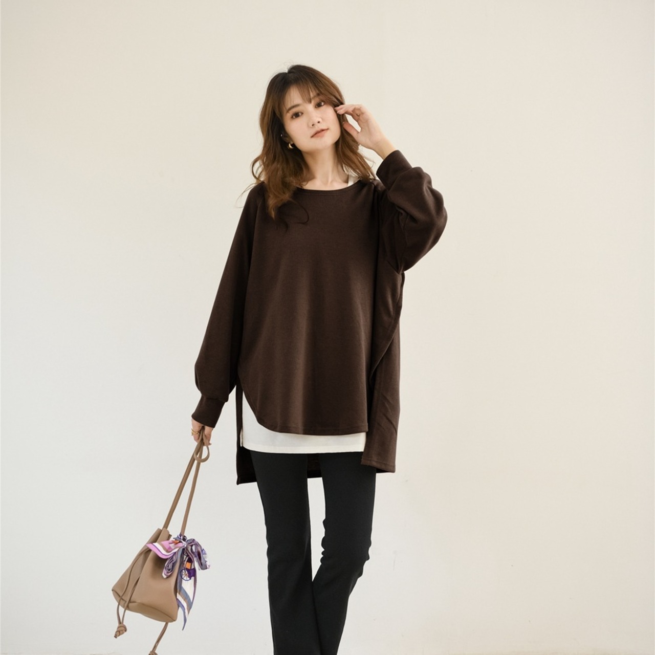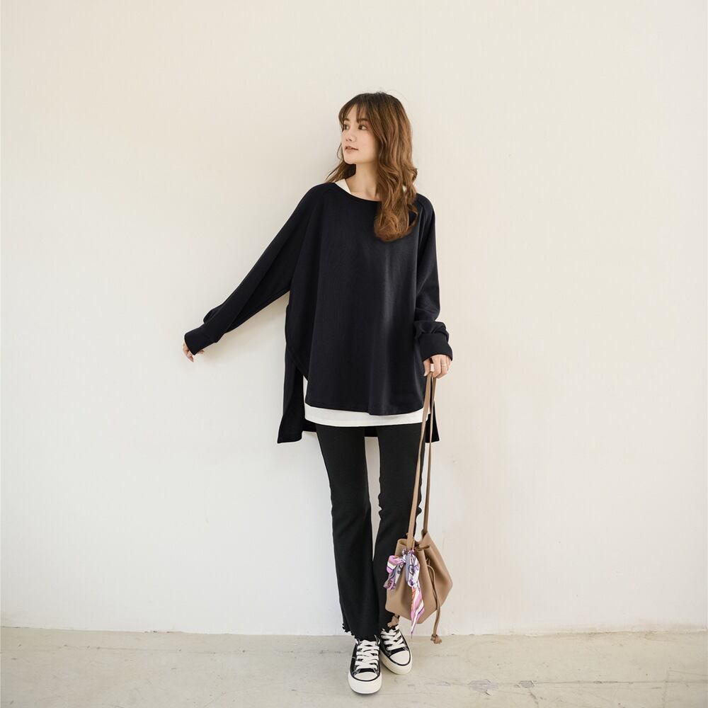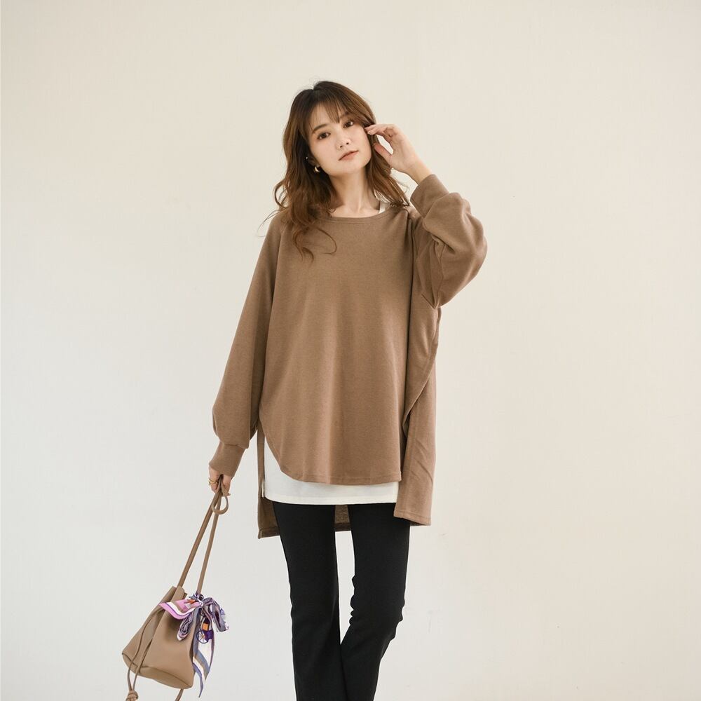 初回送料無料ゆったりとしたラウンドネックトップレディースファショントップスブラウス