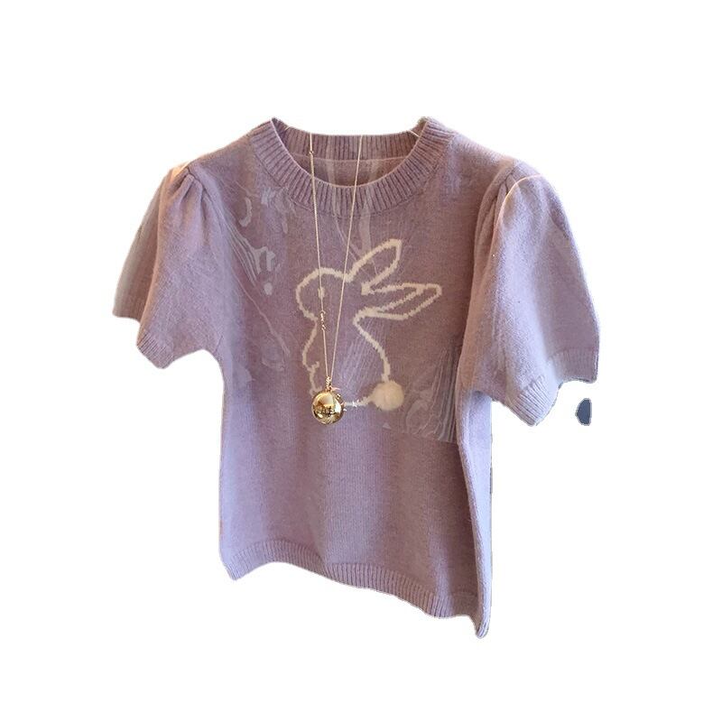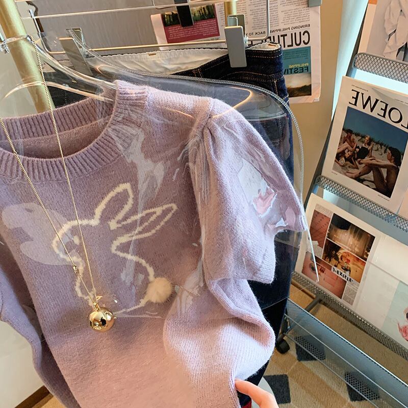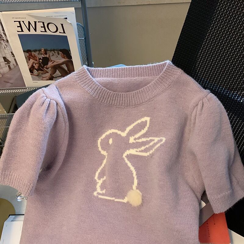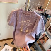 初回送料無料トップパフスリーブウサギ柄レディースファショントップス人気商品