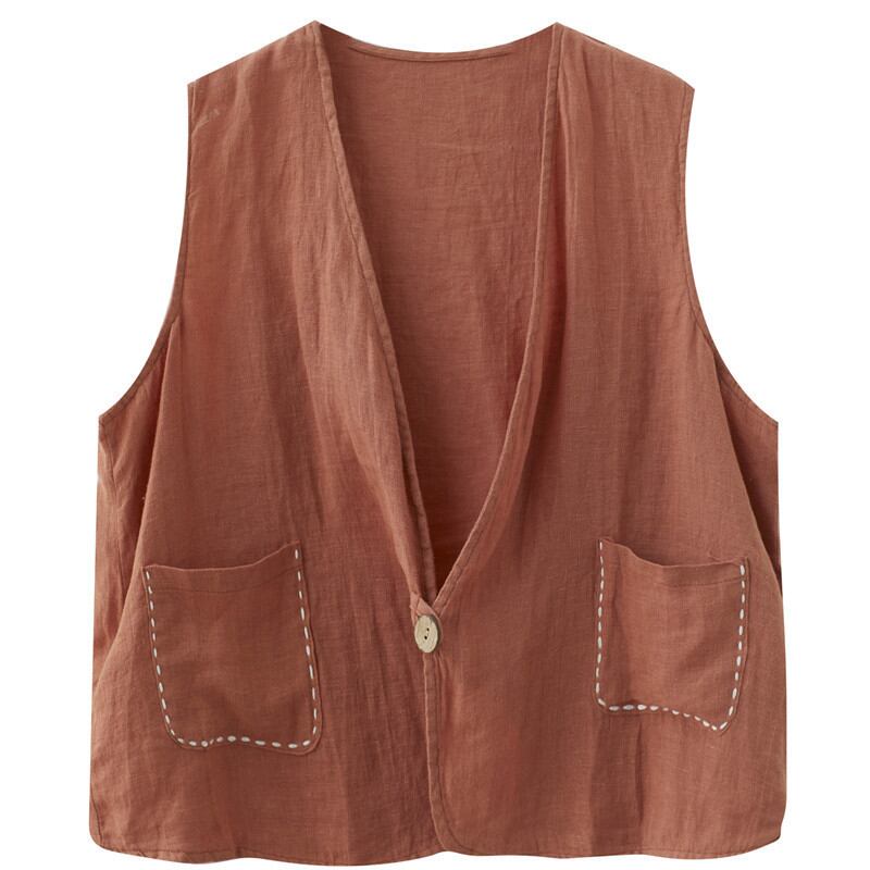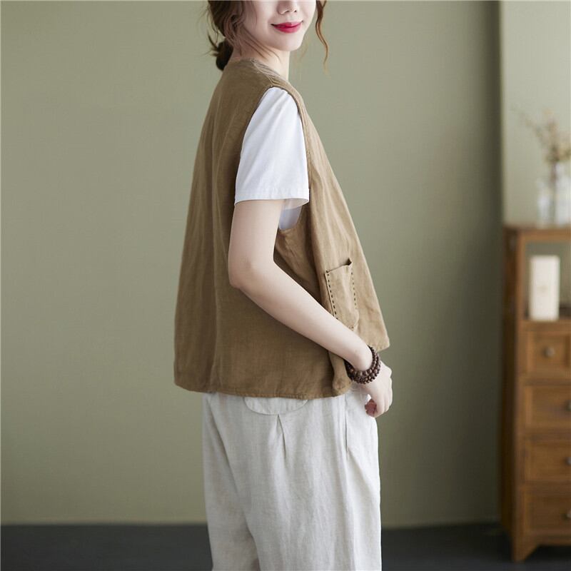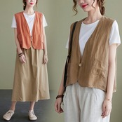 初回送料無料ゆったりサイズコットンリネン棉麻ベストトップスラージサイズ