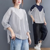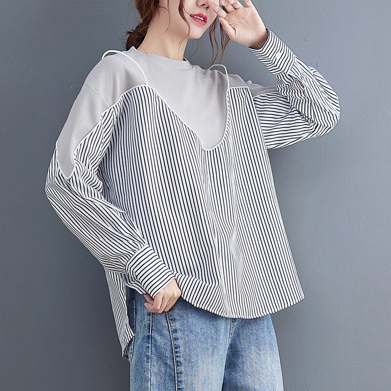 初回送料無料ステッチゆるいステッチ薄い大きいサイズの長袖トップスブラウス人気商品