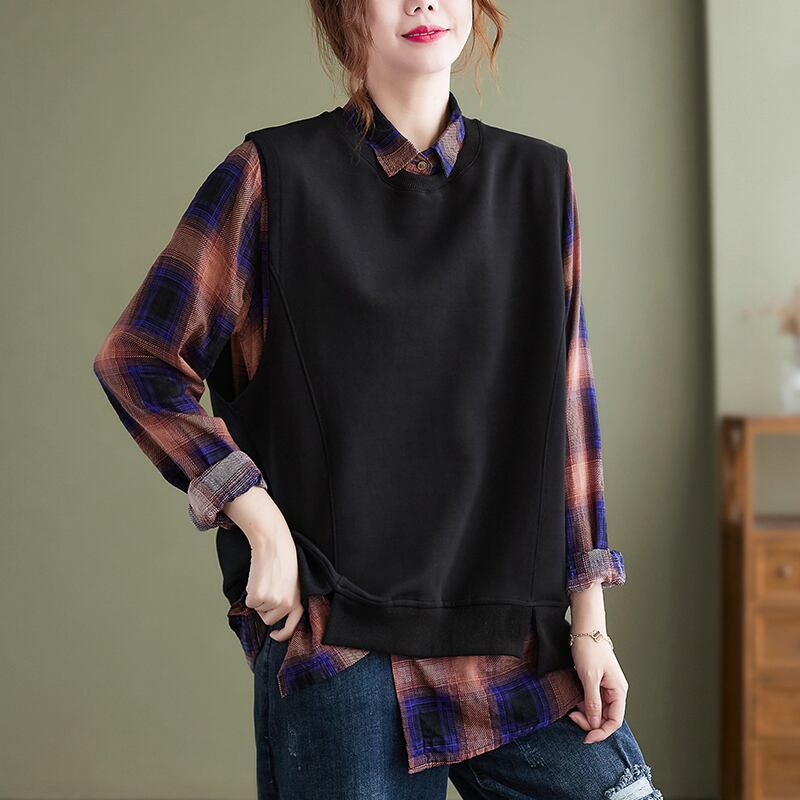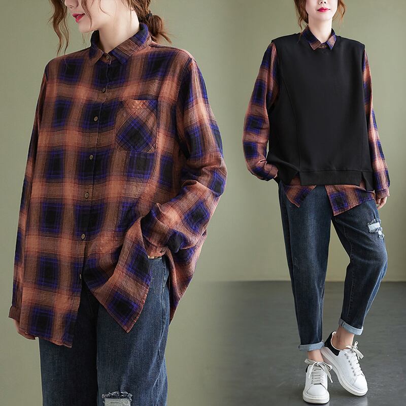 初回送料無料ゆったりサイズチェックプラスサイズシャツ長袖ノースリーブクルートップス人気商品