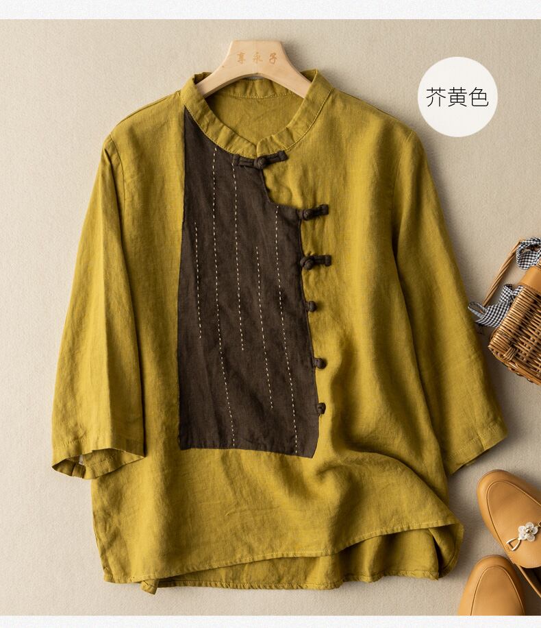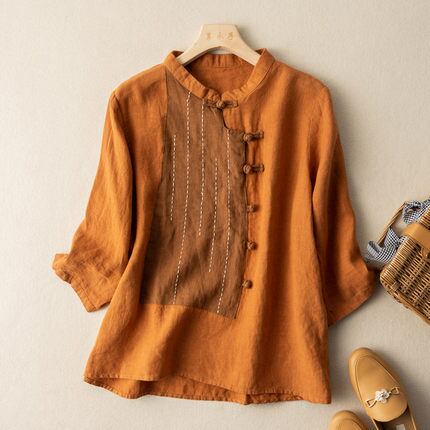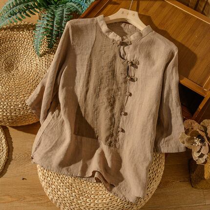 初回送料無料ゆったりとしたトップスボタンコットン棉麻トップスファション