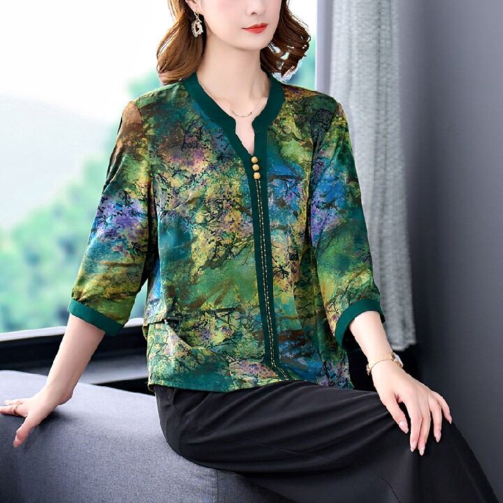 初回送料無料七分袖シルクレディースファション人気商品トップスブラウス