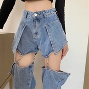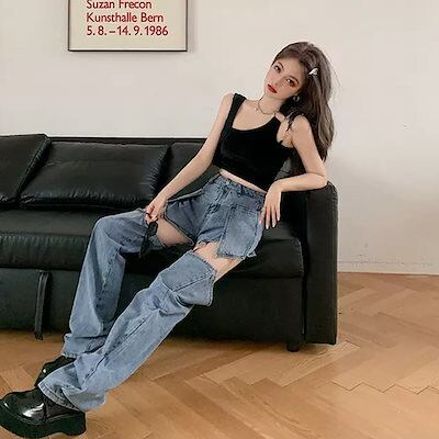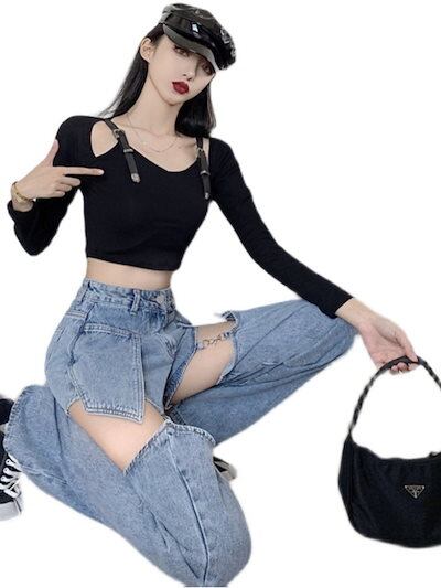 2024 春夏パンツ デニム ジーンズ スキニー レッグ ハイウエスト 脚長効果 美脚効果 細見え 春 水色 ライトブルー ストリート系 カジュアル ズボンファッション デザインお出かけ