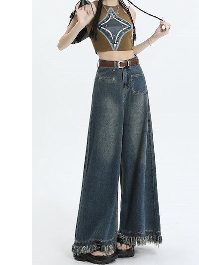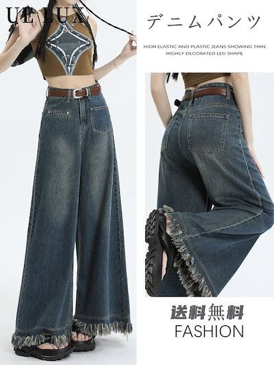 ワイドパンツ2024新作 おしゃれ 流行り デニムパンツ ハイウエスト ワイドパンツ ジーンズ レディース レトロ ゆったり ズボン デニムボトムス スキニーパンツ